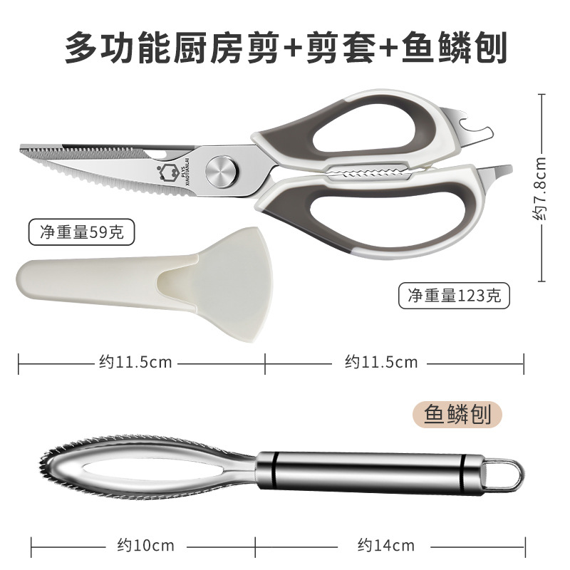 • 흰색 다기능 주방 가위 + 냉장고 자석 칼 커버 + 스테인레스 스틸 생선 비늘 대패