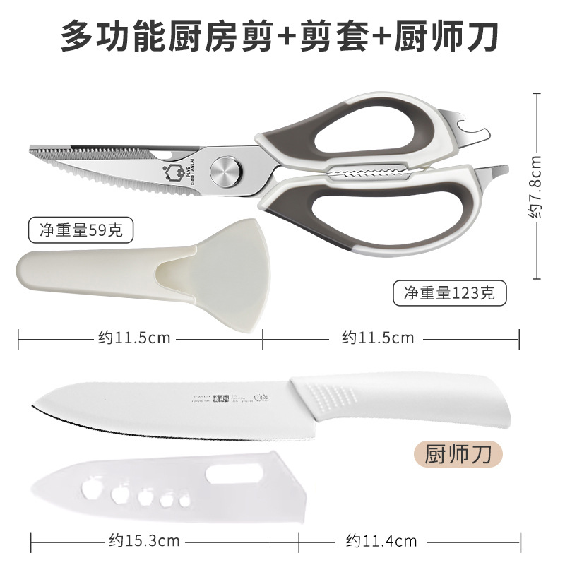 • 흰색 다기능 주방 가위 + 냉장고 자석 칼 커버 + 북유럽 흰색 슬라이스 칼