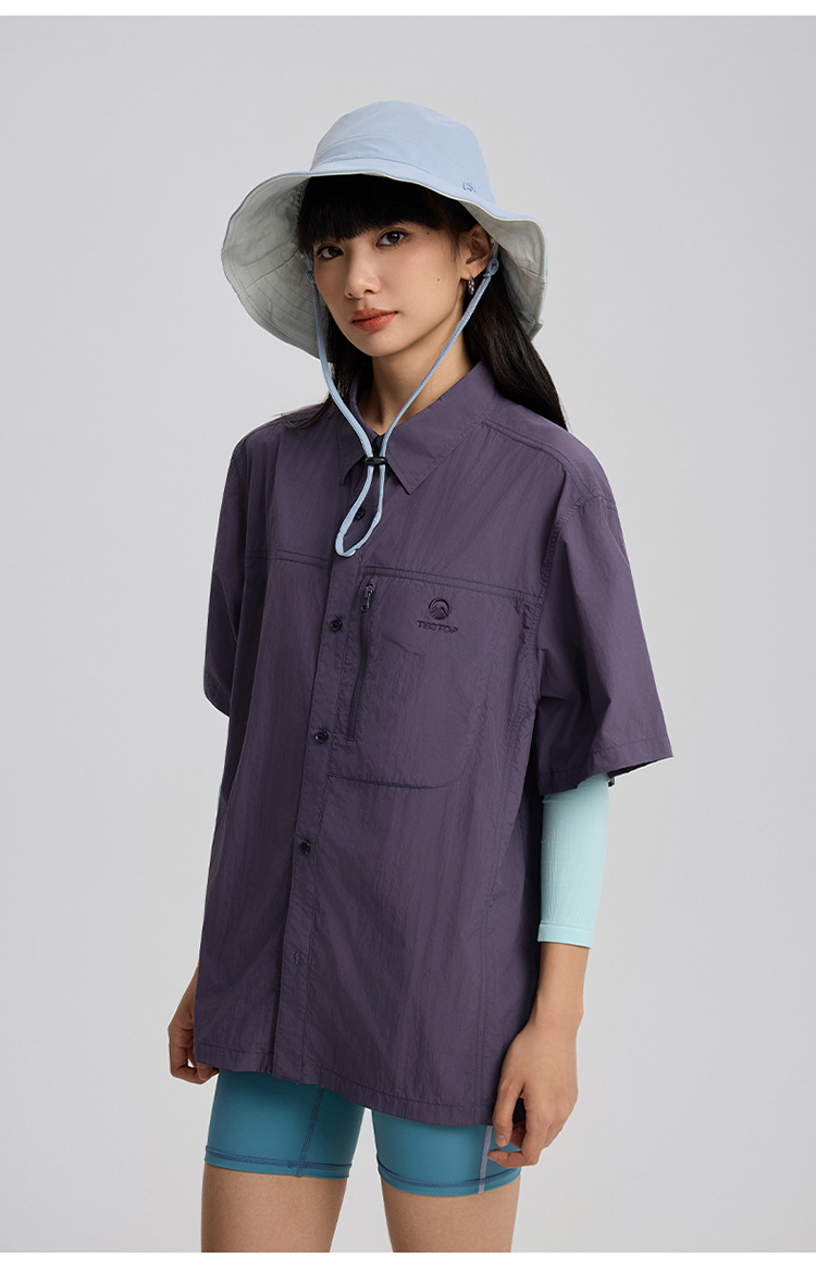 2025 봄과 여름 새로운 야외 탄성 빠른 건조 반팔 셔츠 여성의 다기능 멀티 가방 작업 셔츠 남자의 빠른 건조 옷스토어 가기