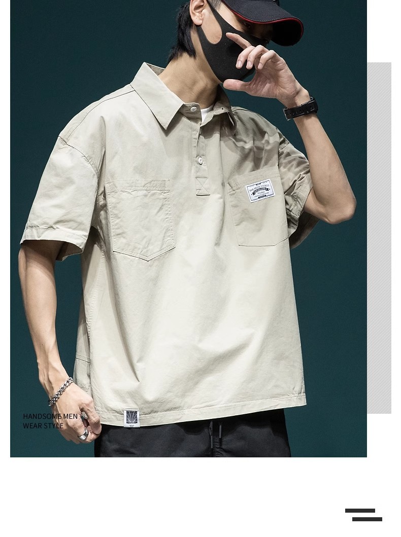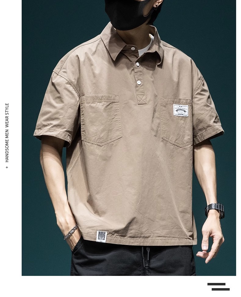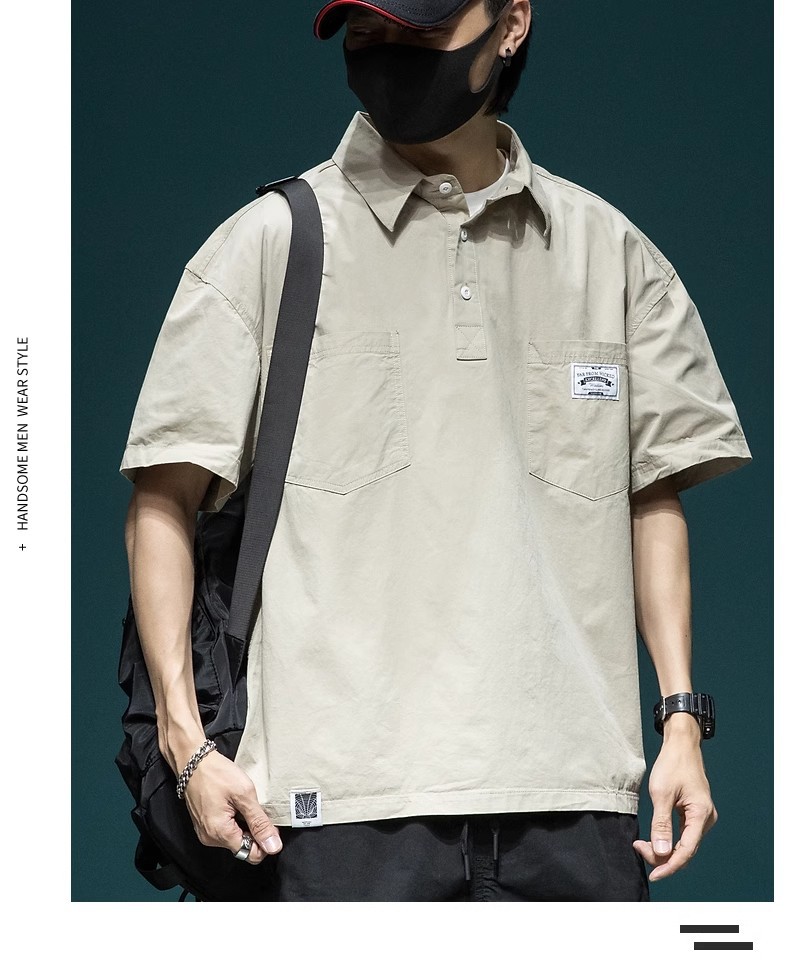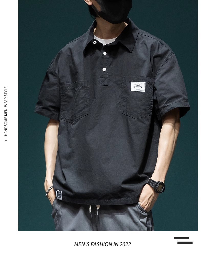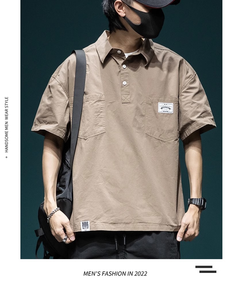 일본식 화물 반팔 셔츠 남자 여름 새 느슨한 플러스 사이즈 폴로 셔츠 유행 캐주얼 남성 반소매 탑스토어 가기