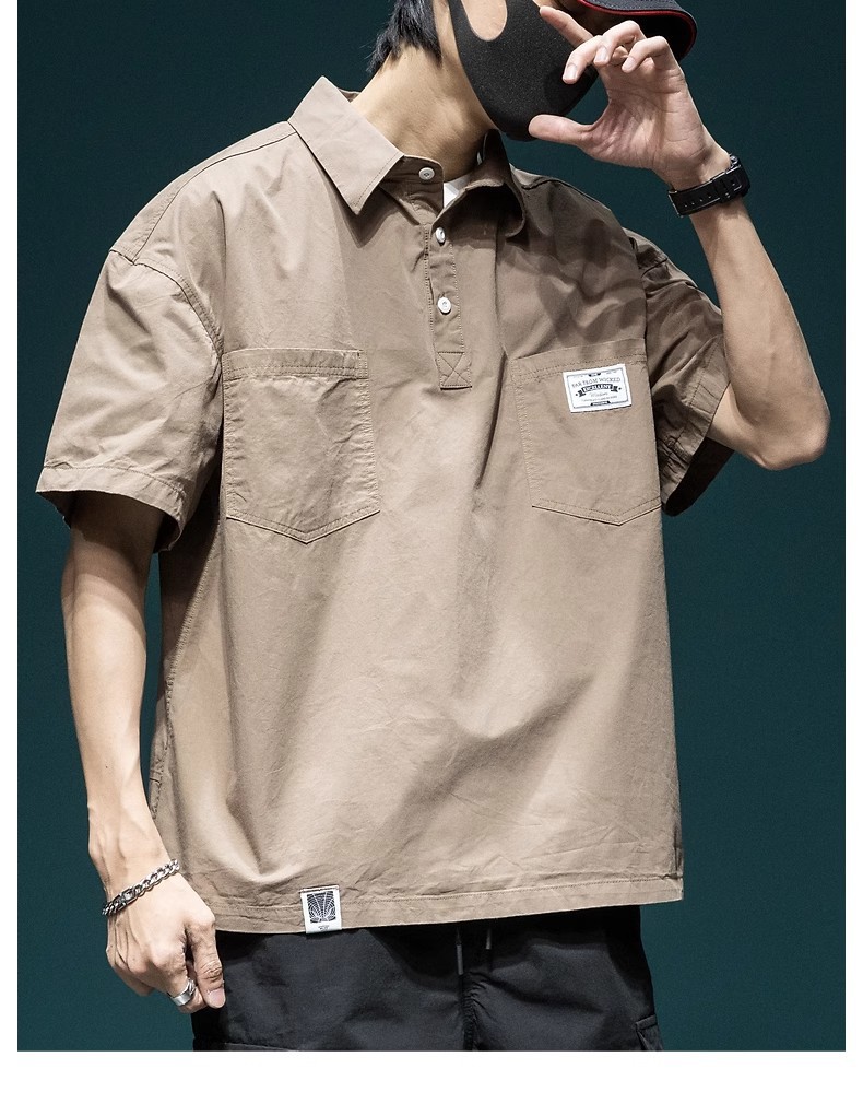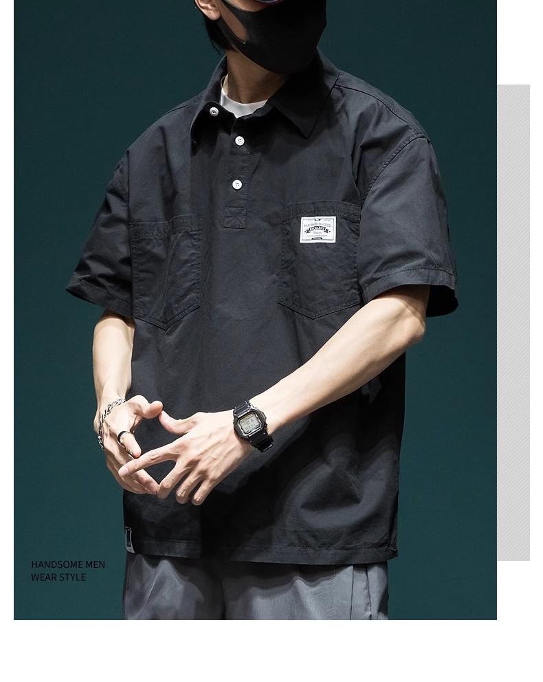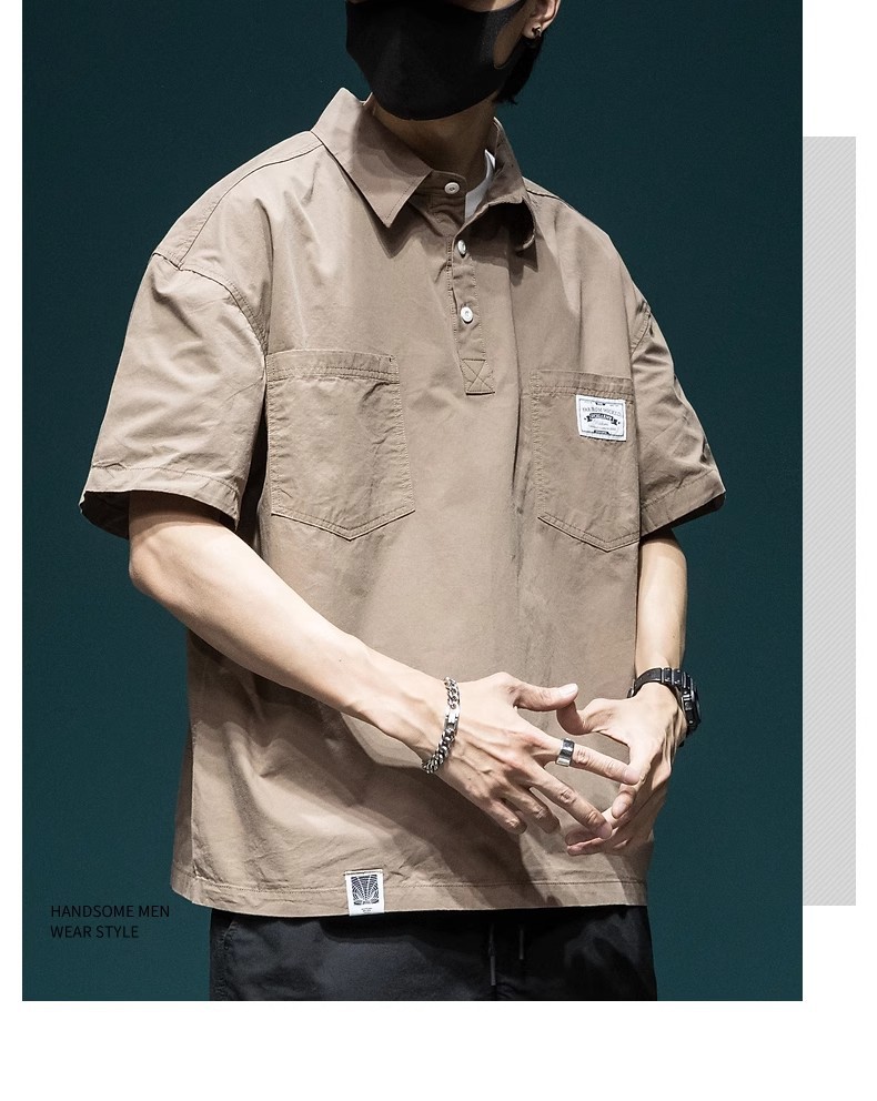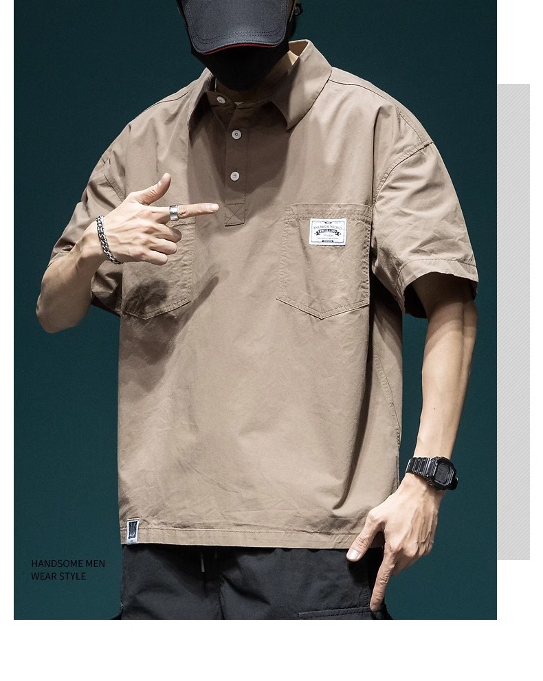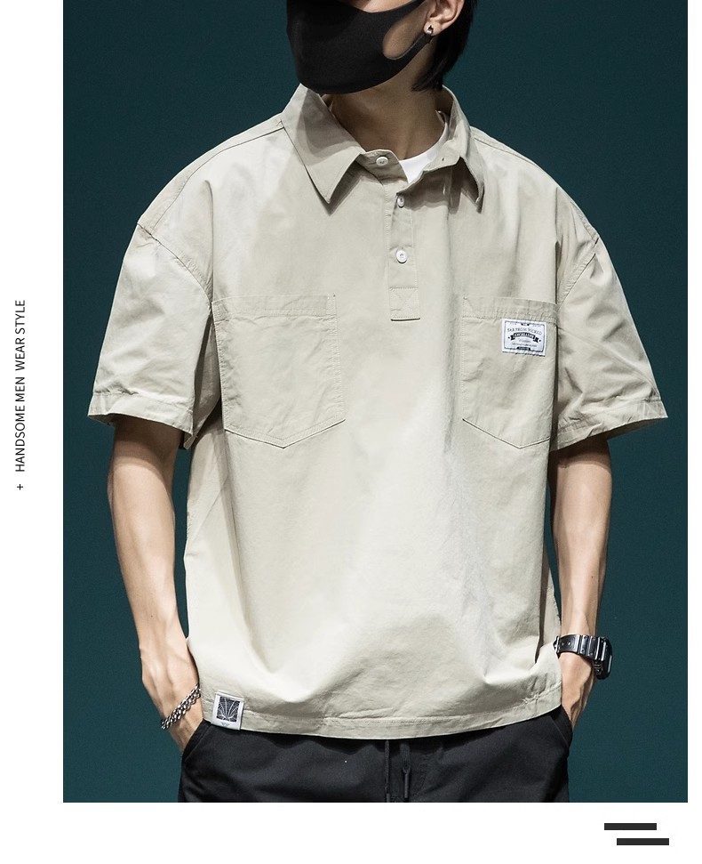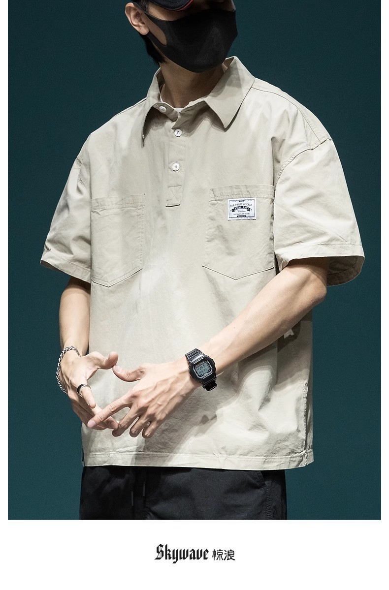 일본식 화물 반팔 셔츠 남자 여름 새 느슨한 플러스 사이즈 폴로 셔츠 유행 캐주얼 남성 반소매 탑스토어 가기