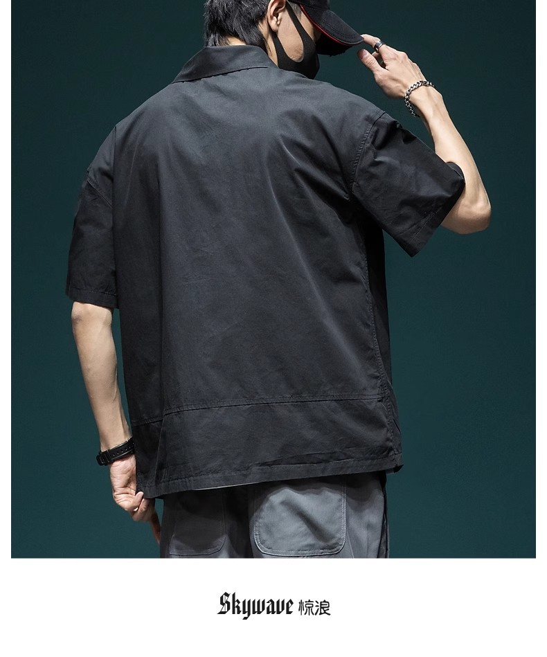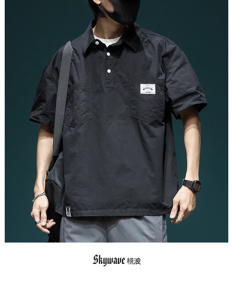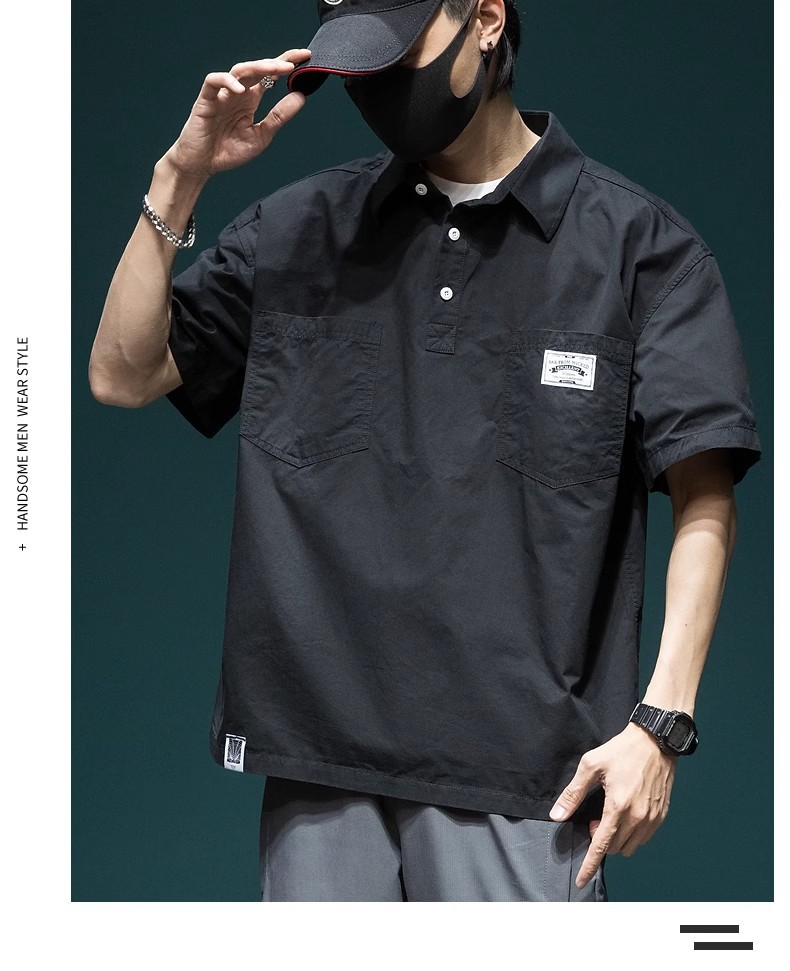 일본식 화물 반팔 셔츠 남자 여름 새 느슨한 플러스 사이즈 폴로 셔츠 유행 캐주얼 남성 반소매 탑