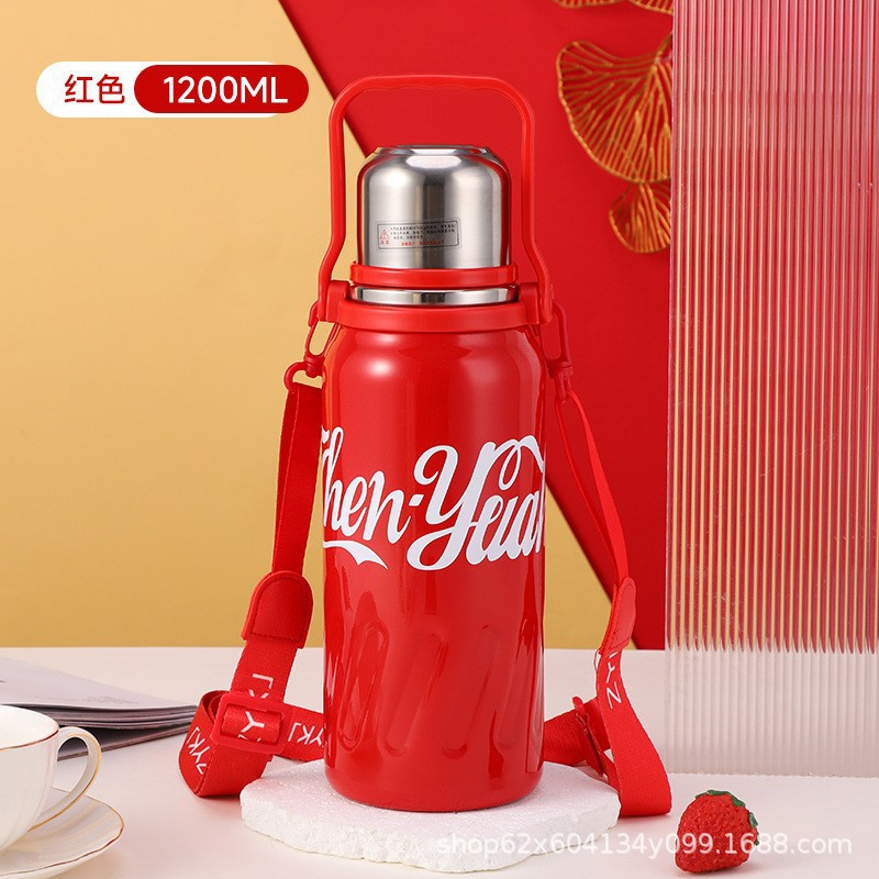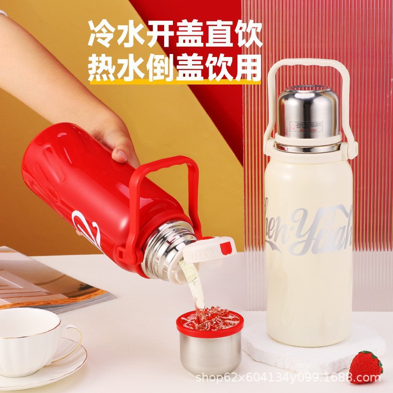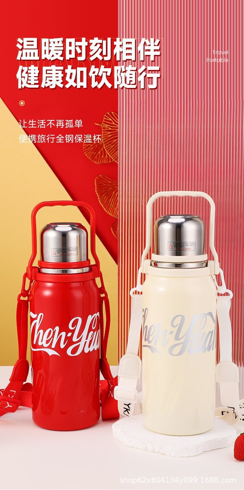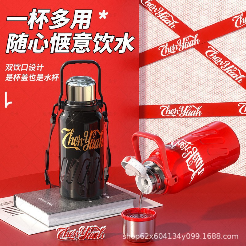 높은 색상 가치 보온병 컵 대용량 물 컵 316 스테인레스 스틸 등산 스포츠 냄비 로프 여행 냄비