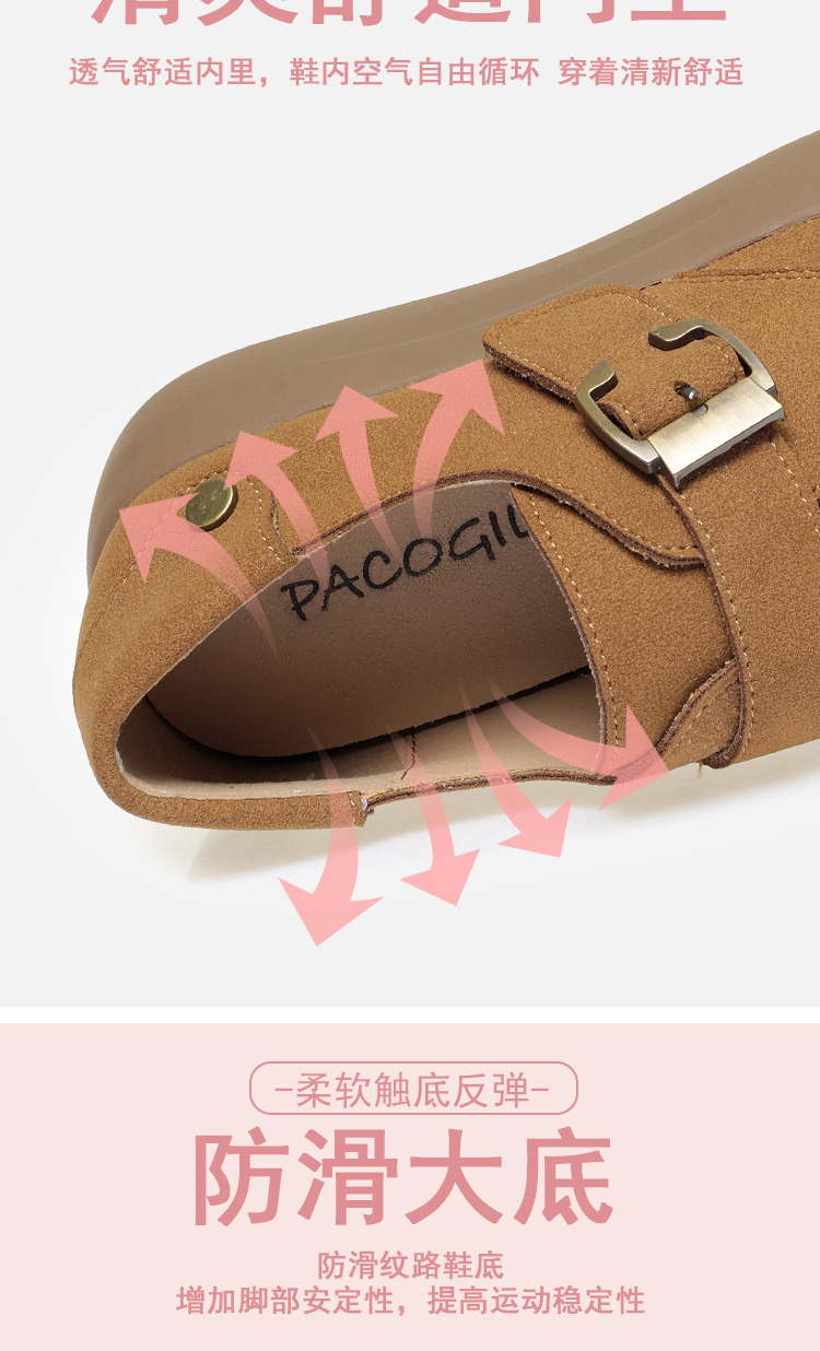 레트로 부드러운 가죽 둥근 머리 깊은 입 페달 Lefu 신발 두꺼운 밑창 Joker Birkenth 신발 Doudou 신발스토어 가기