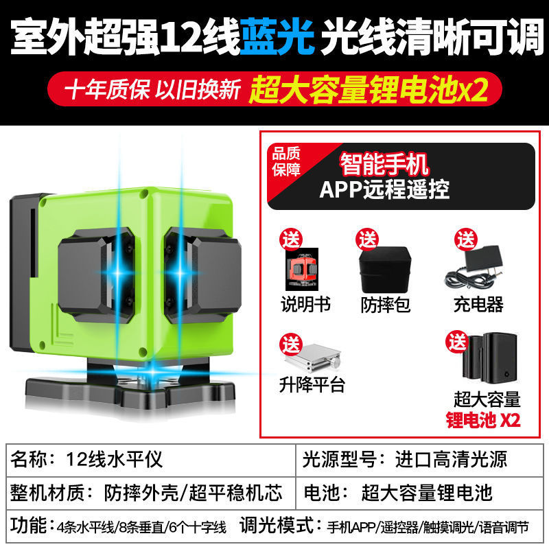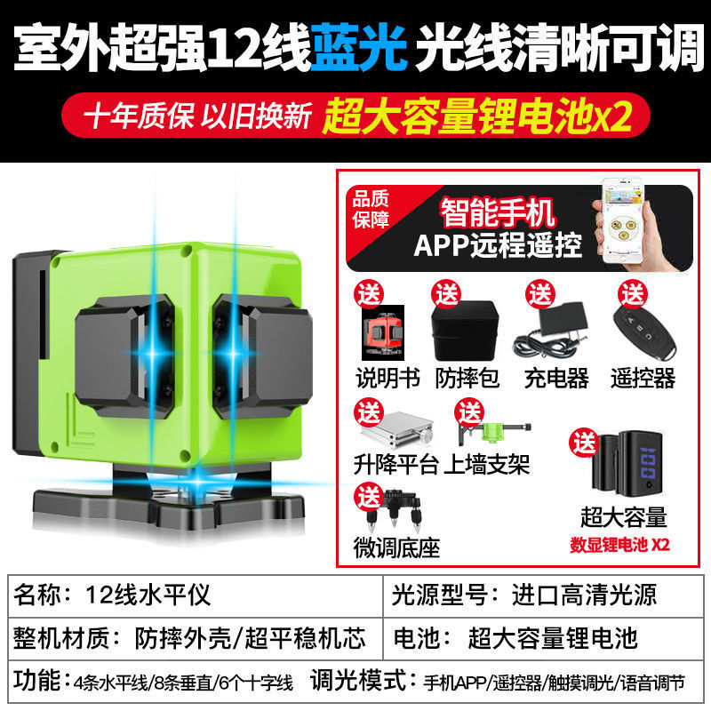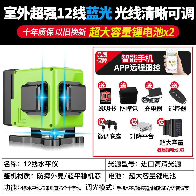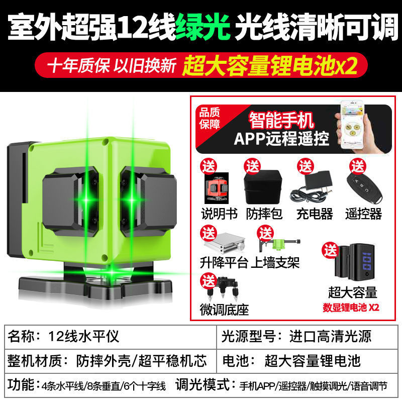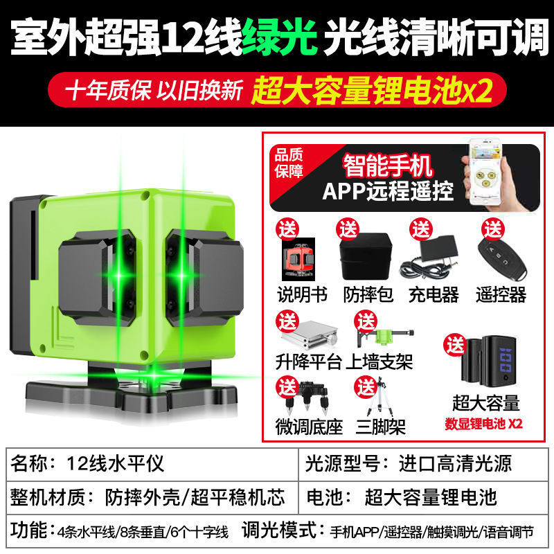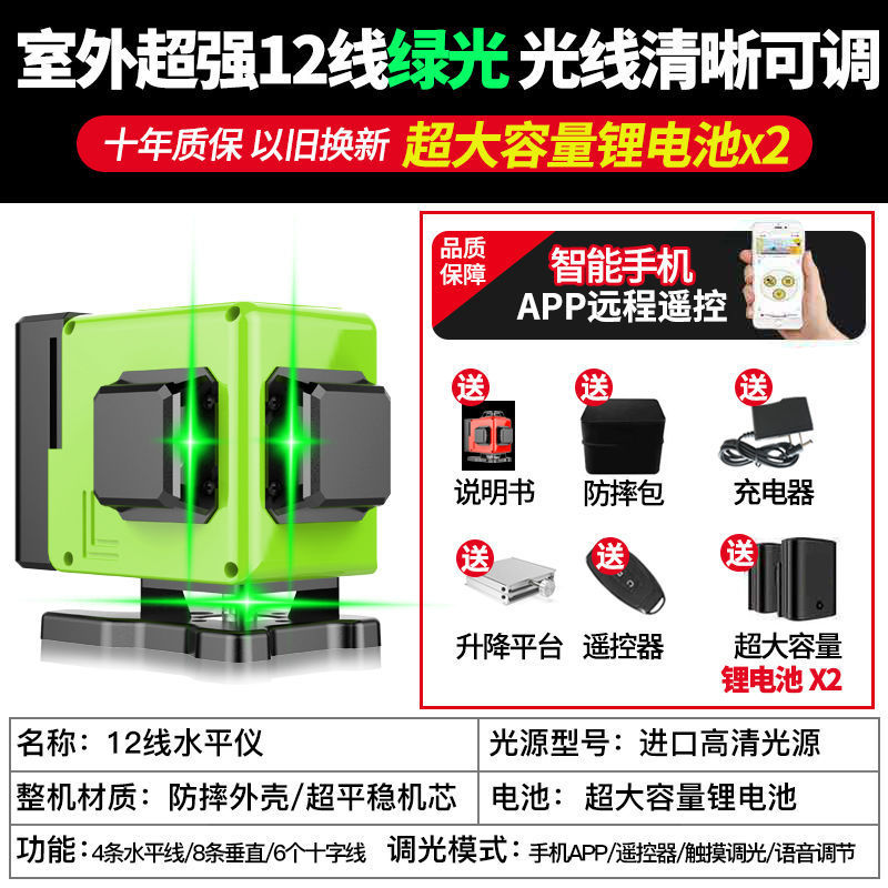 타일 석고 레벨 녹색 빛 12 라인 강한 빛 높은 정밀도 적외선 자동 와이어 레이저 벽 스티커 직접 판매스토어 가기