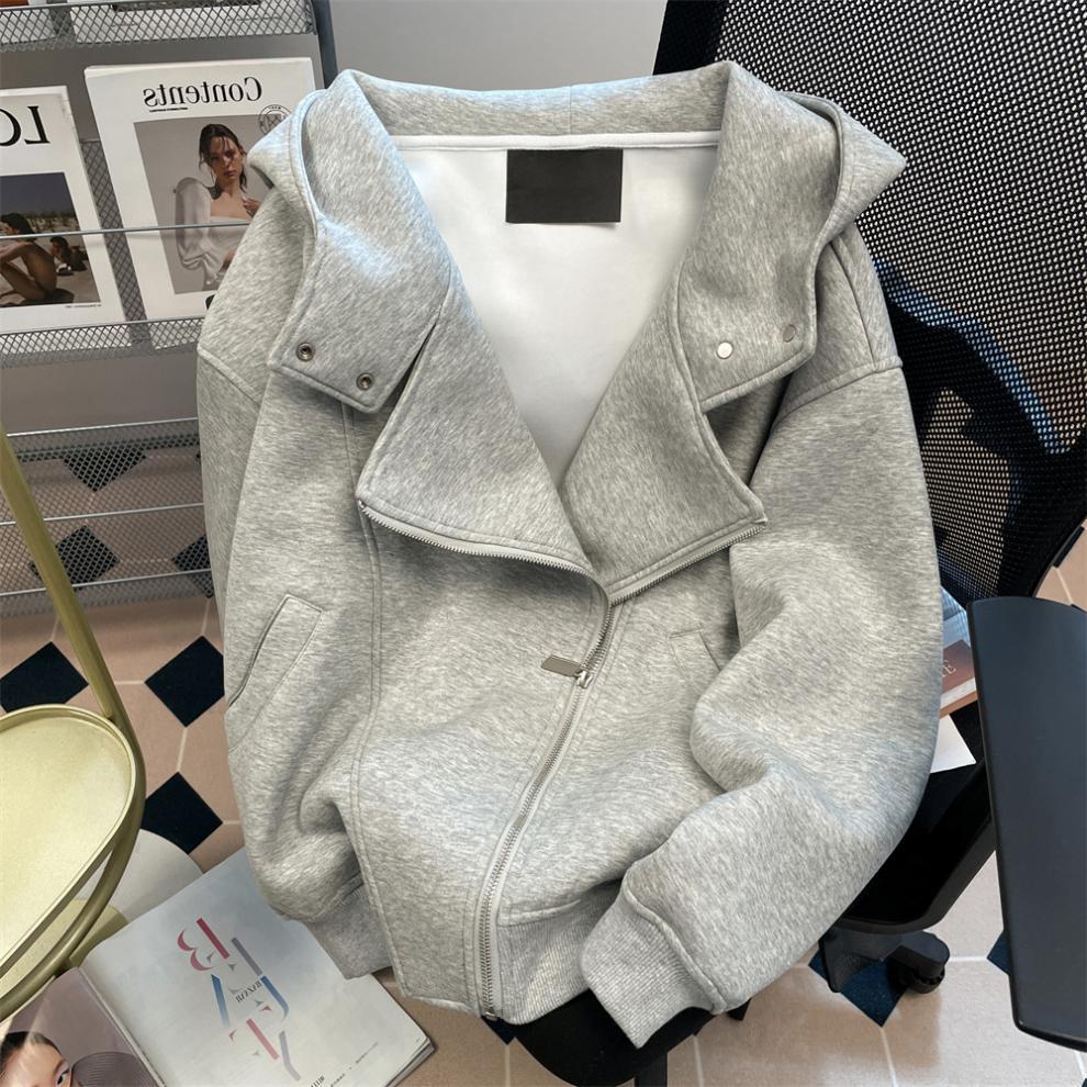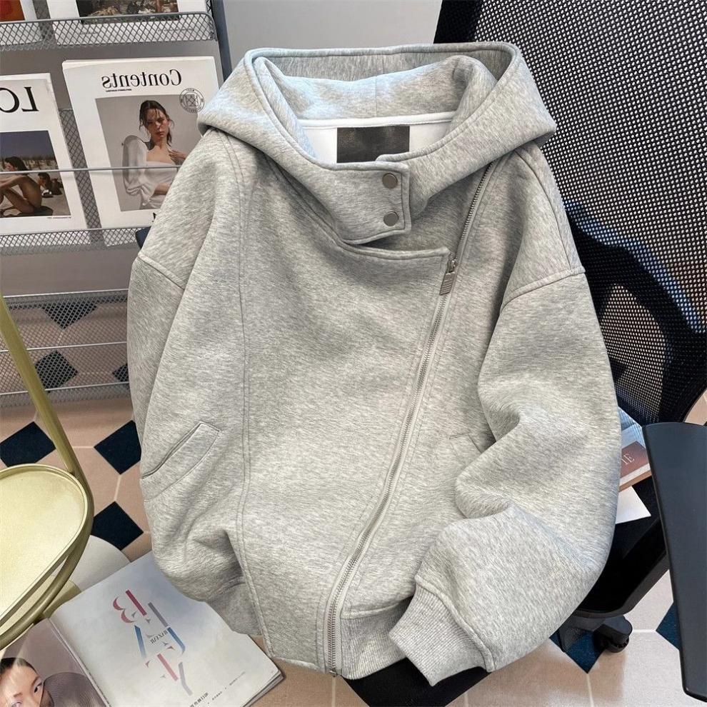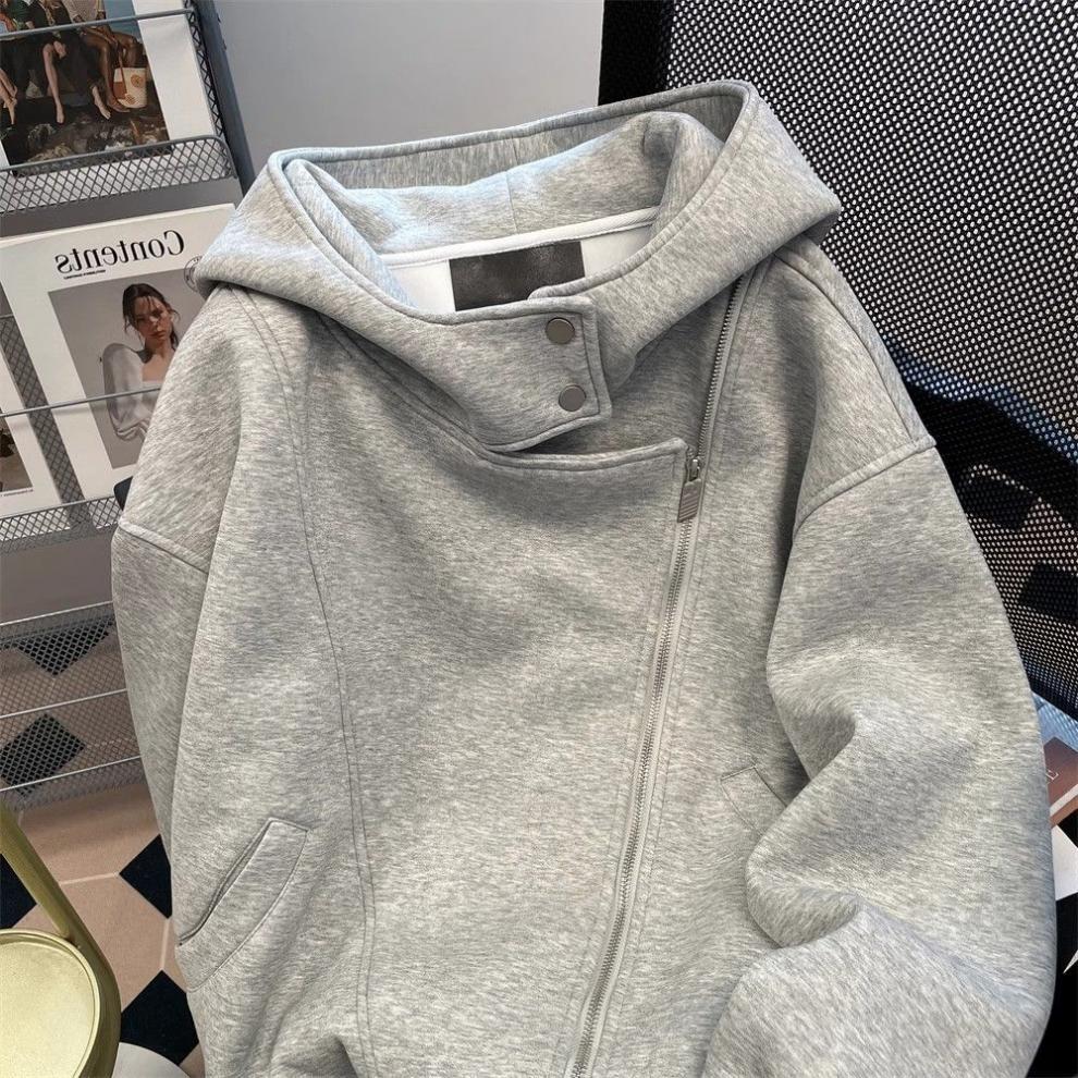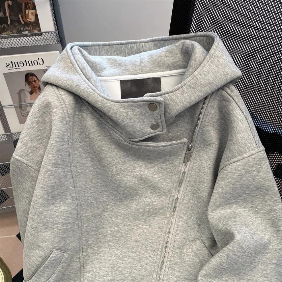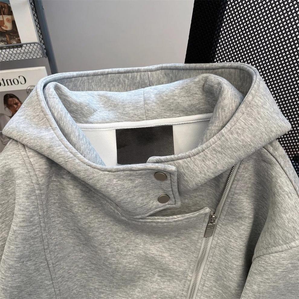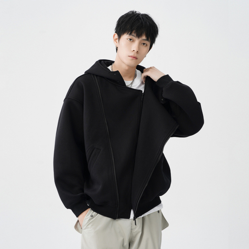 2025 새로운 하이 스트리트 아메리칸 디자인 센스 불규칙한 더블 지퍼 스웨터 남성 봄과 가을 헤비 후드 카디건 재킷스토어 가기