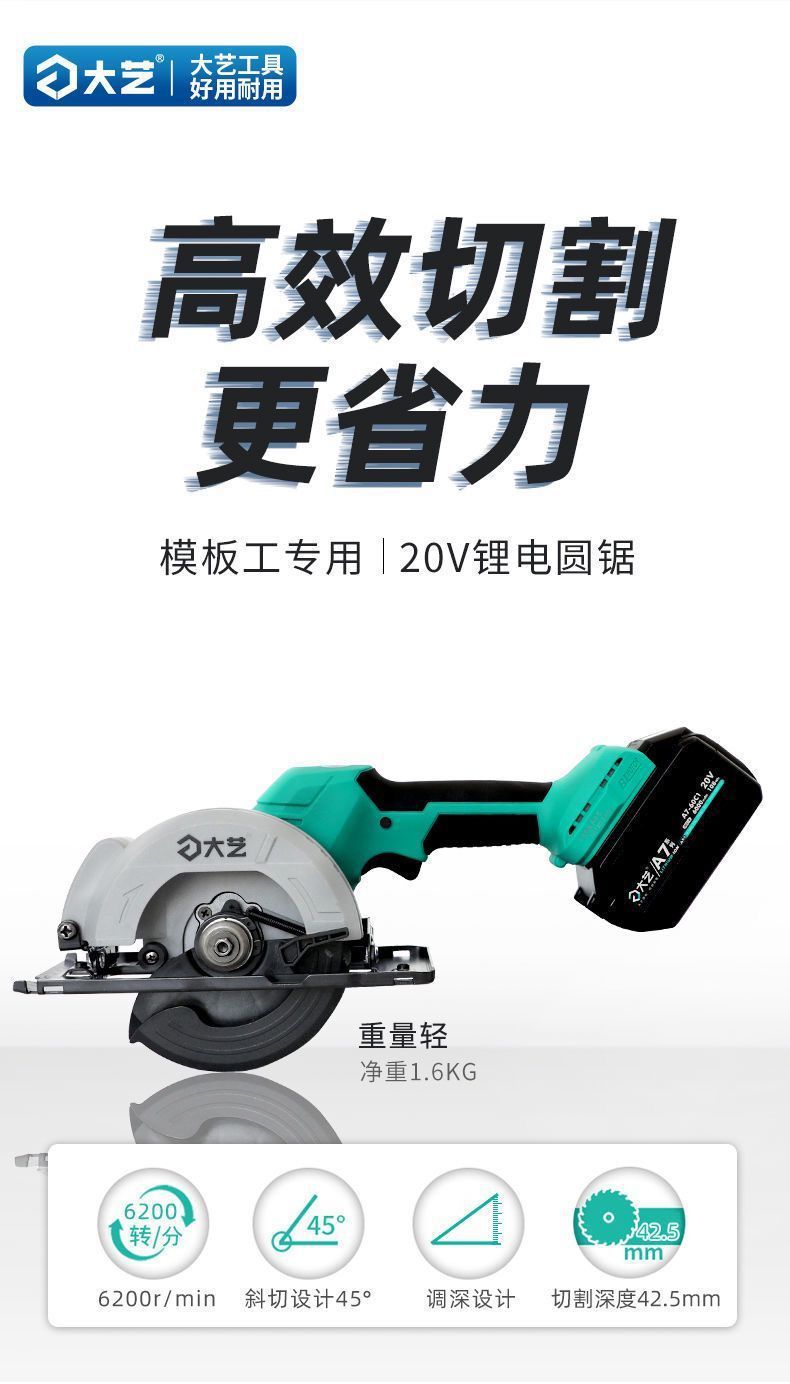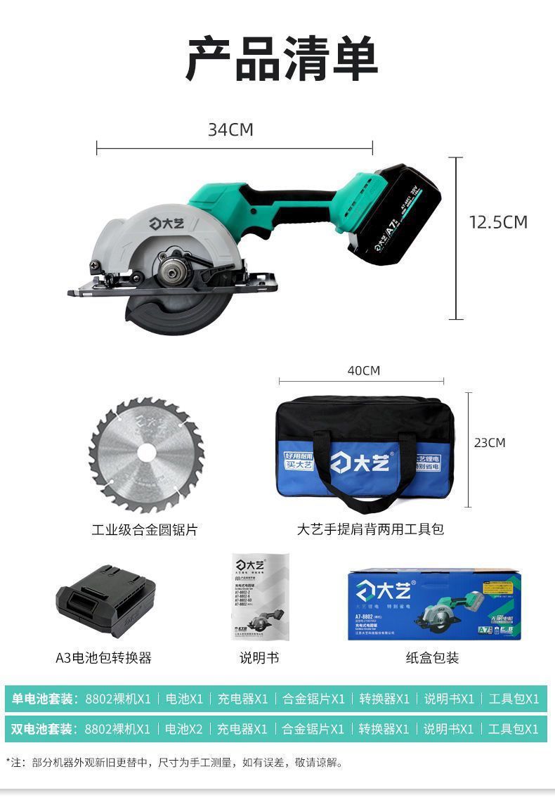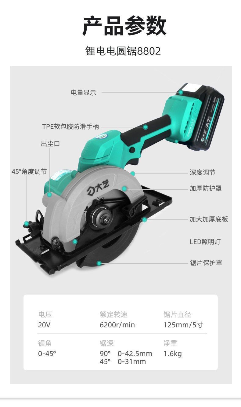 Dayi 리튬 전기 원형 톱 A7-8802 브러시리스 목공 톱 5 인치 휴대용 톱 원형 톱 충전식 전기 톱 절단 기계스토어 가기