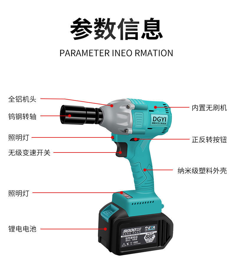 독일 Dayi 전기 기계 공구 2106 전기 렌치 브러시리스 48V88V 비계 목공 임팩트 렌치스토어 가기