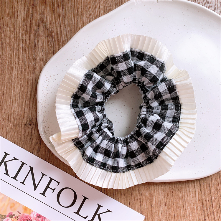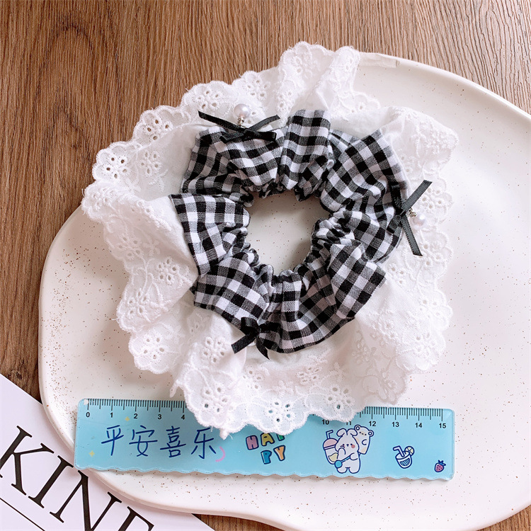 새로운 프랑스 스타일 흑백 격자 무늬 대형 레이스 레이스 헤어 링 달콤한 소녀 볼 헤드 대형 그릇 링 헤어 로프 헤어 액세서리