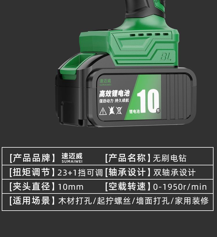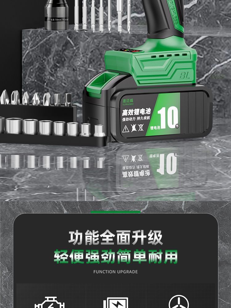 • 견고한 일반 척(토크 10배)_브러시리스 배터리 10개, 배터리 1개, 충전 상자 1개 + 비트