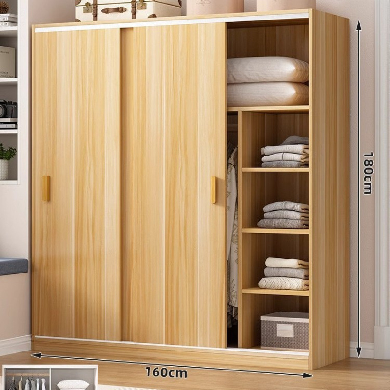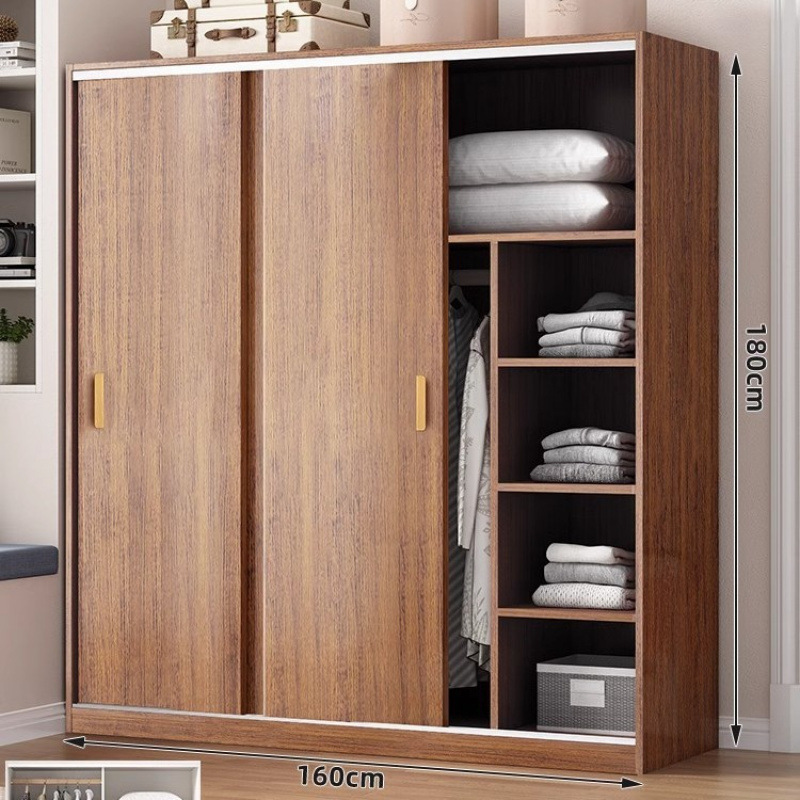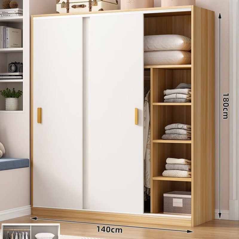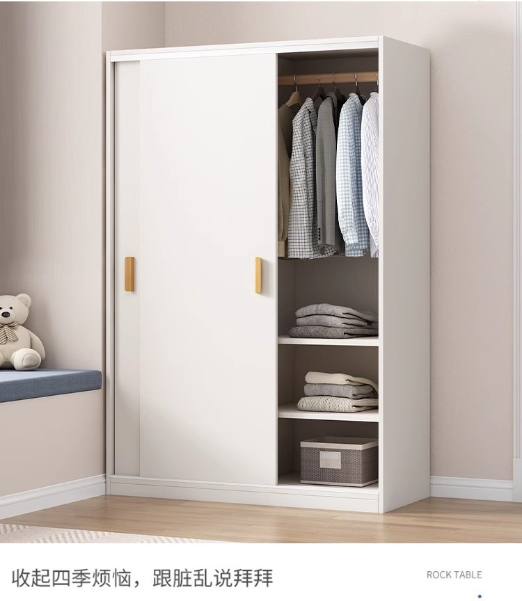 옷장 가정용 침실 슬라이딩 도어 단단한 목재 임대 어린이 대형 옷장 간단한 조립 보관 캐비닛
