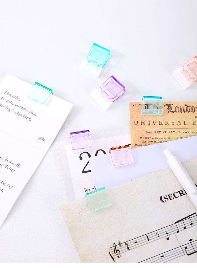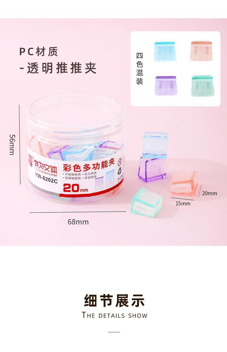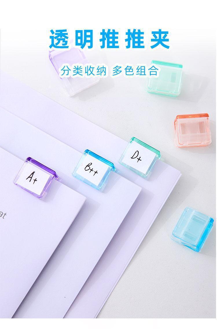 푸시 클립 투명 컬러 작은 클립 오피스 파일 슬라이딩 클립 학생 테스트 용지 데이터 스토리지 고정 푸시 클립