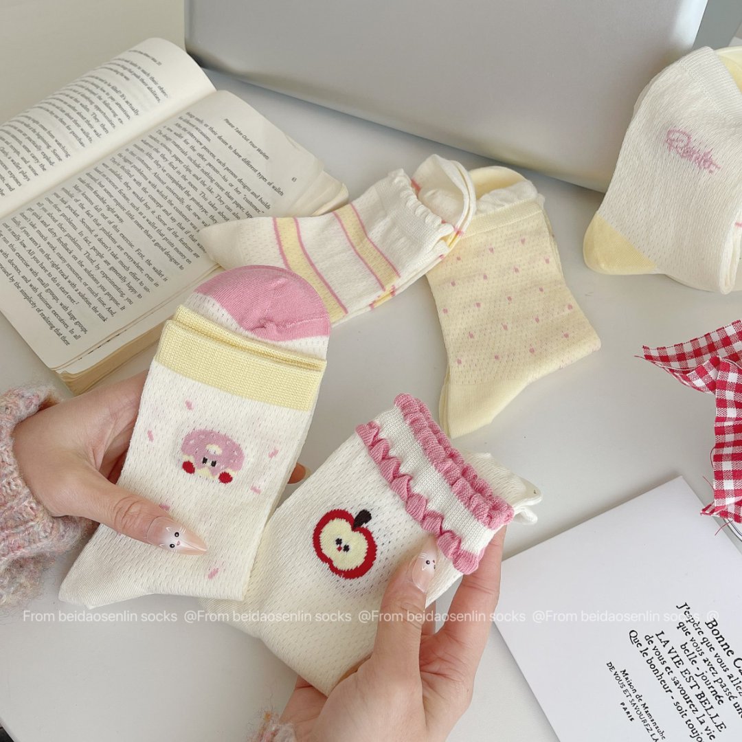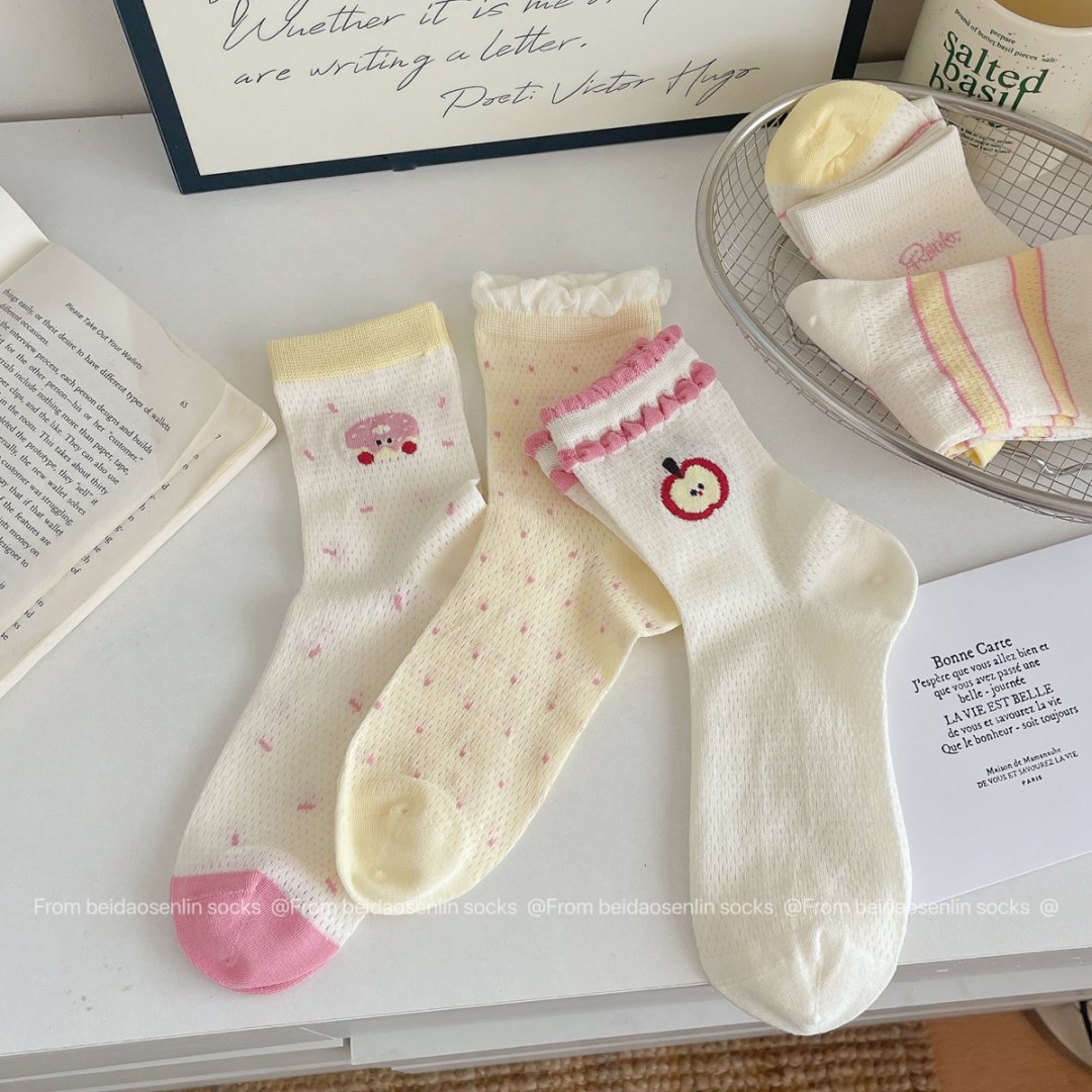 봄과 여름 새로운 메쉬 양말 마우스 양말 어린이 달콤한 메쉬 도넛 애플 웨이브 도치 코시 바람 더미 양말스토어 가기