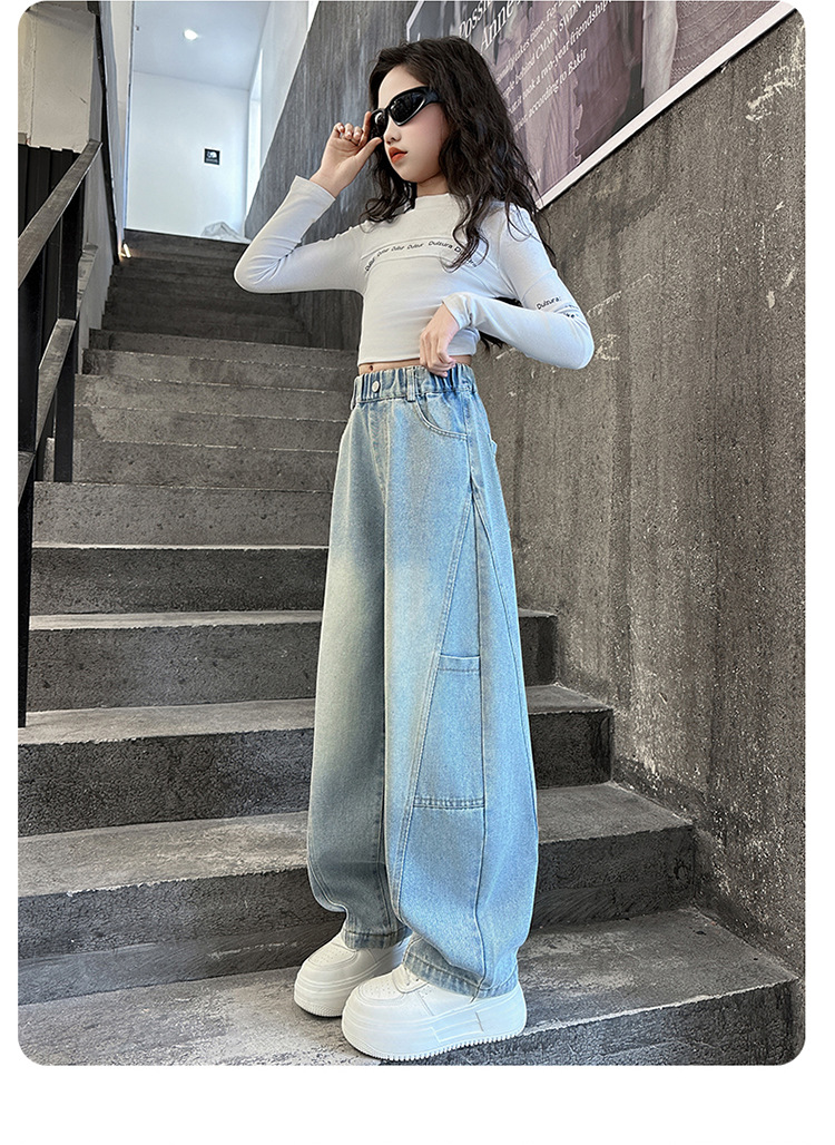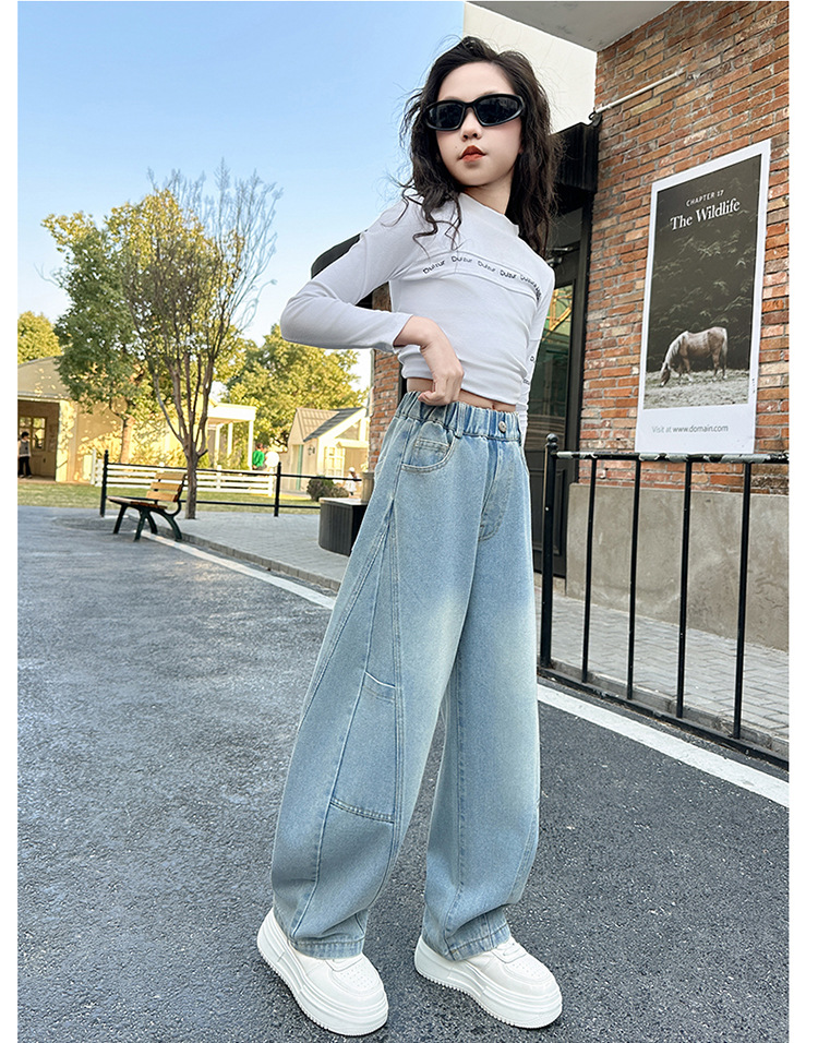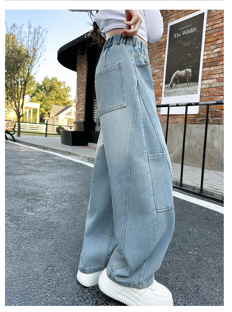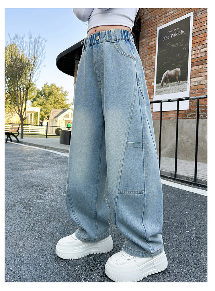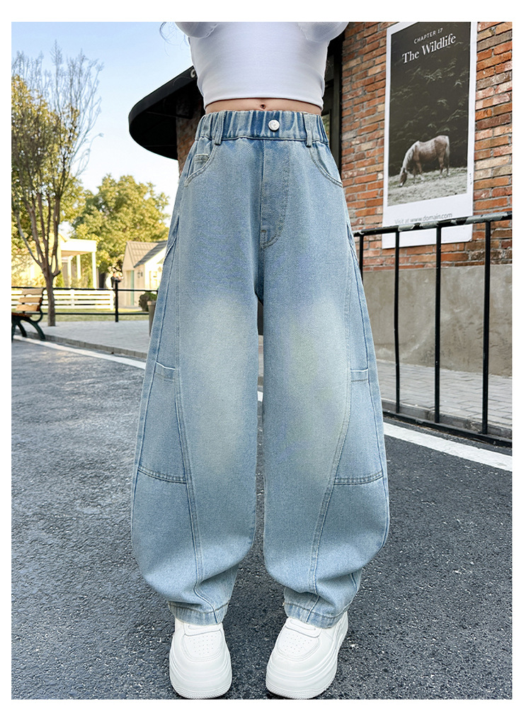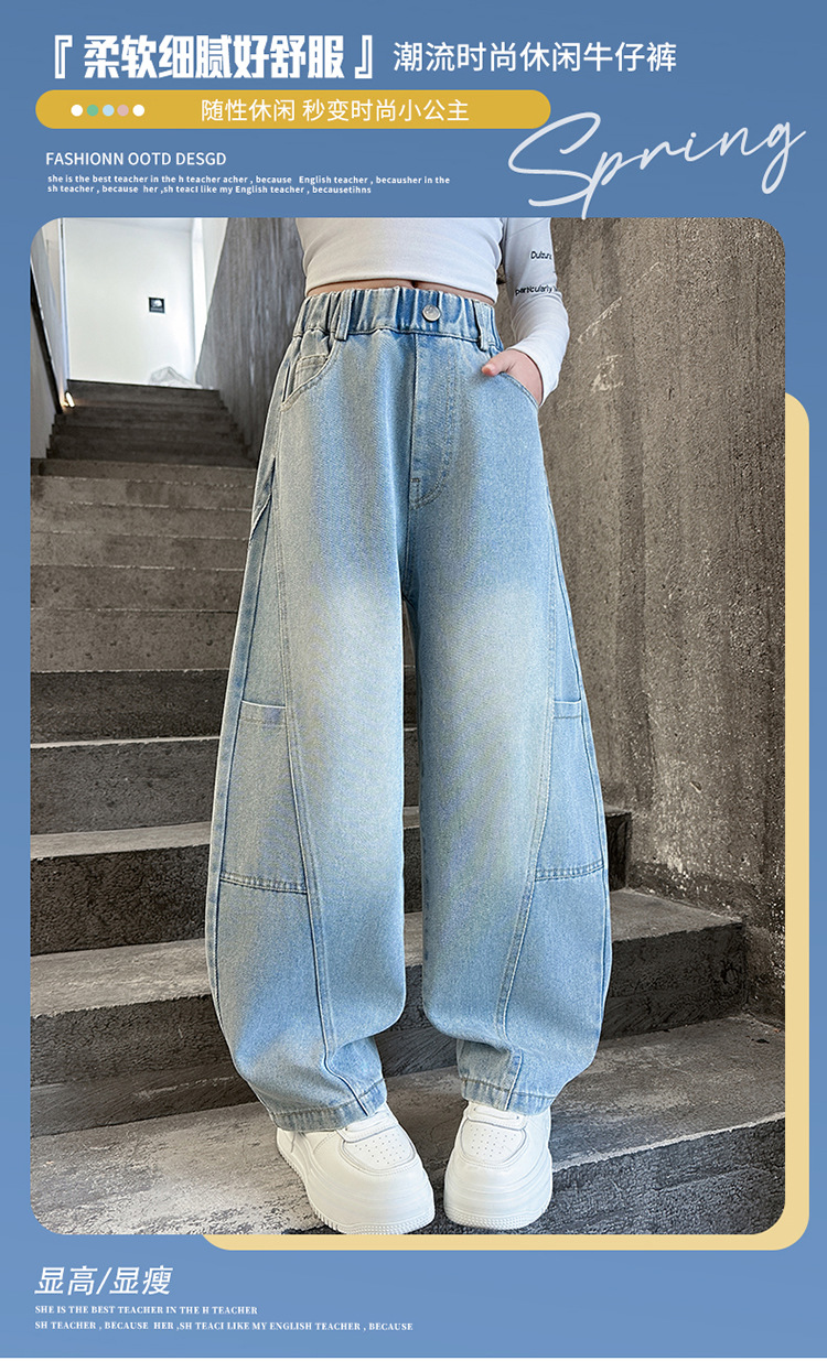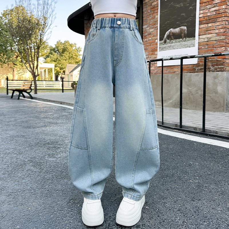 소녀의 봄과 가을 청바지 어린이 2025 새로운 서양식 거리 시미 타르 바지 소녀 캐주얼 올 매치 롱 바지