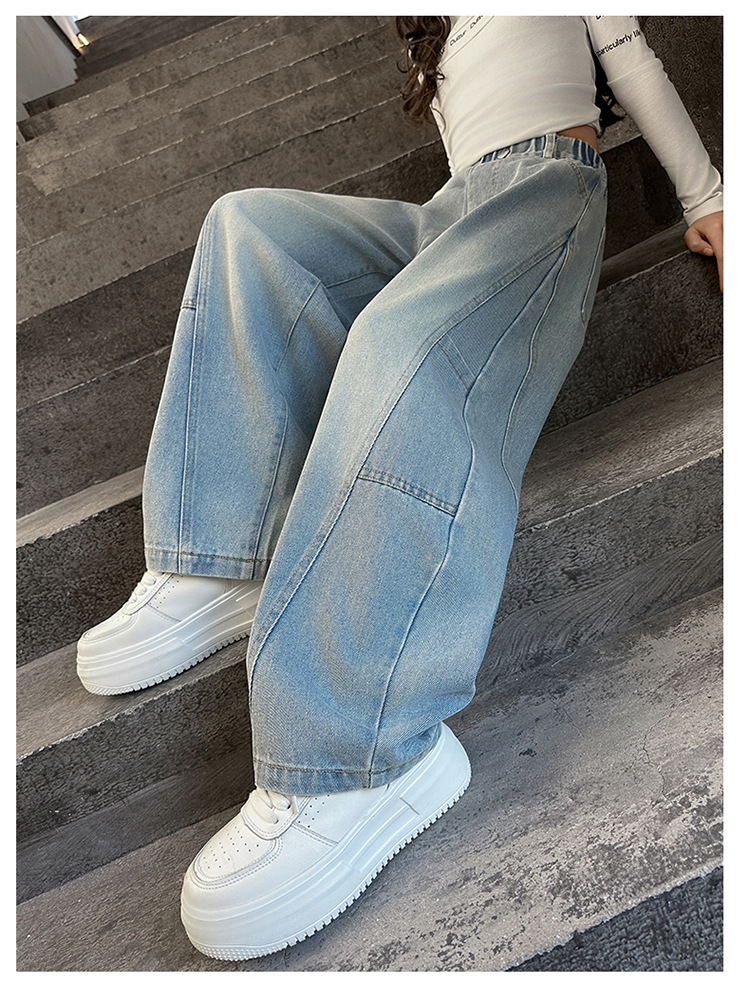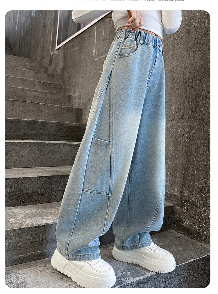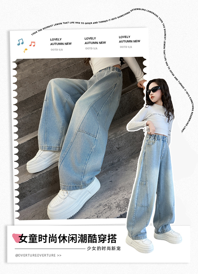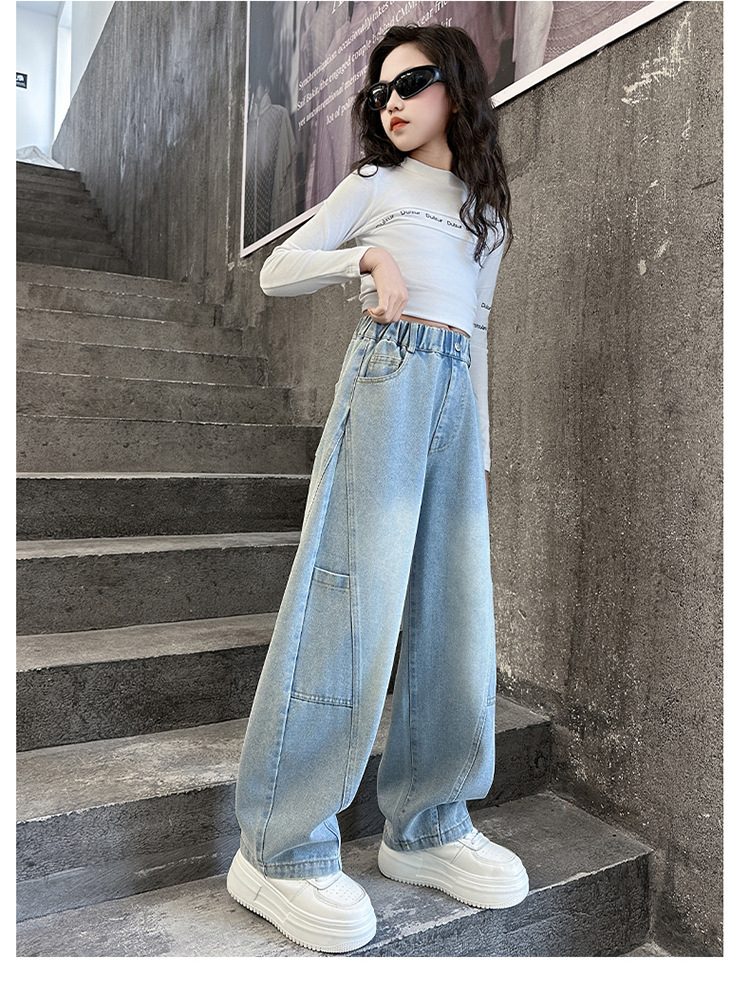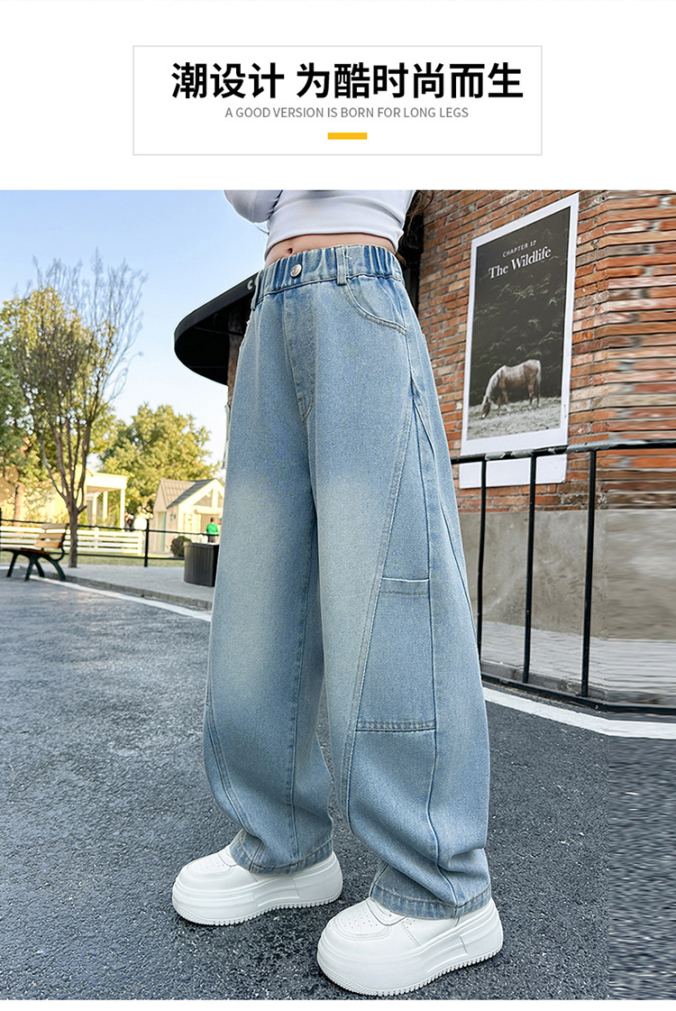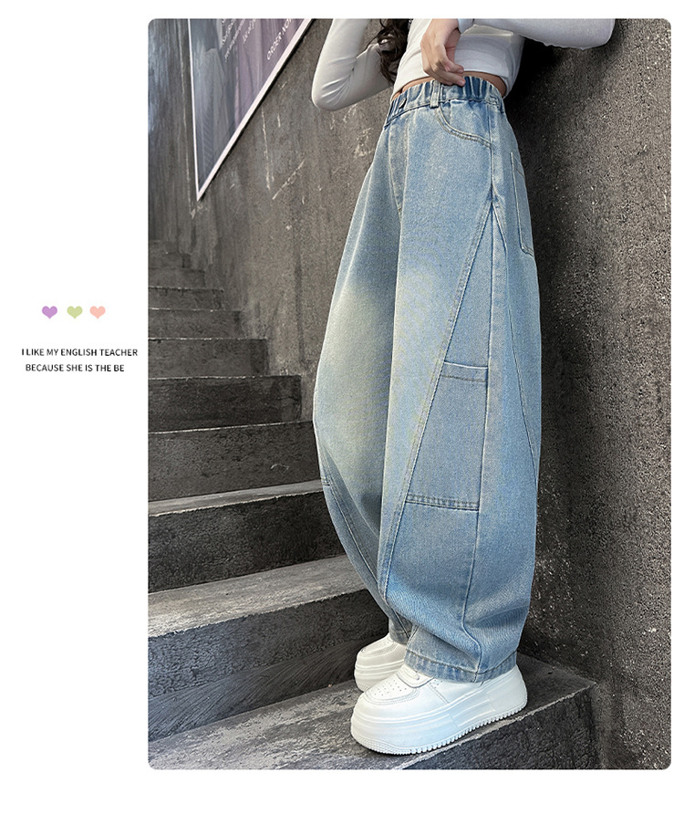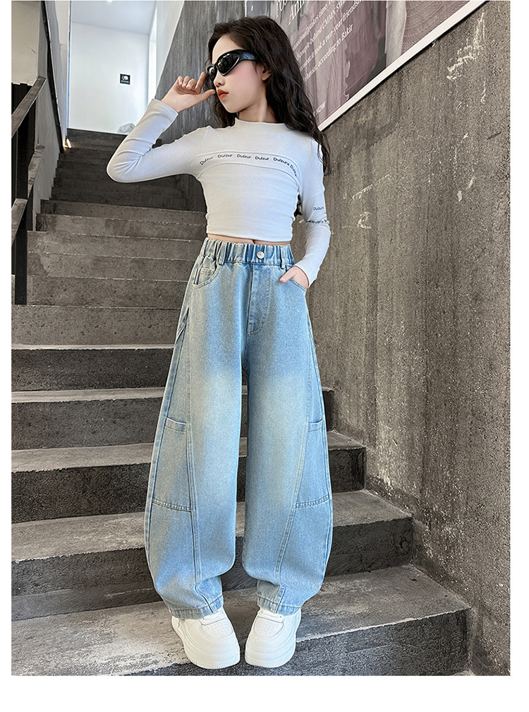 소녀의 봄과 가을 청바지 어린이 2025 새로운 서양식 거리 시미 타르 바지 소녀 캐주얼 올 매치 롱 바지