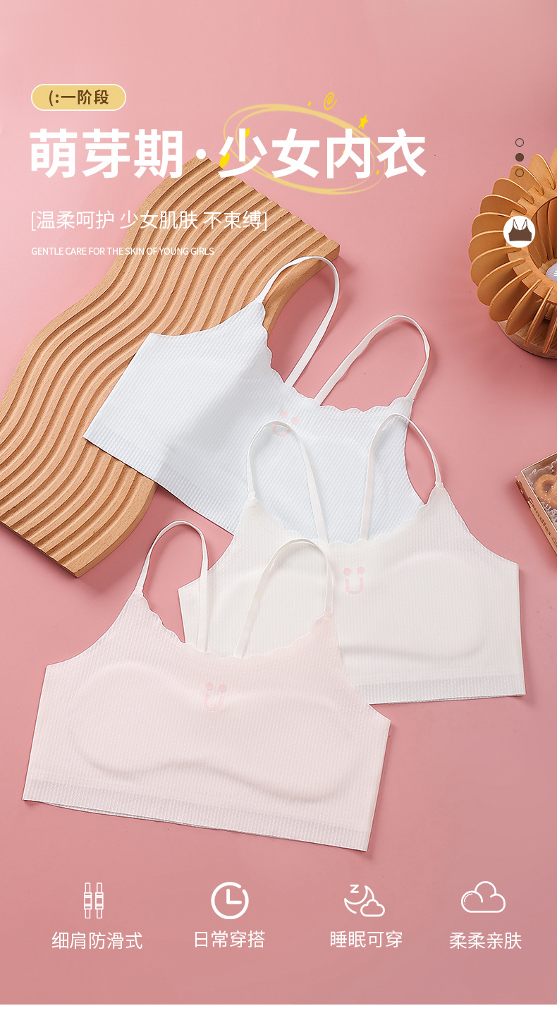 여아 속옷 발달기 무봉제 여름용 얇은 통기성 패드가 있는 여아 브라 중학생 조끼형 브라 7A스토어 가기