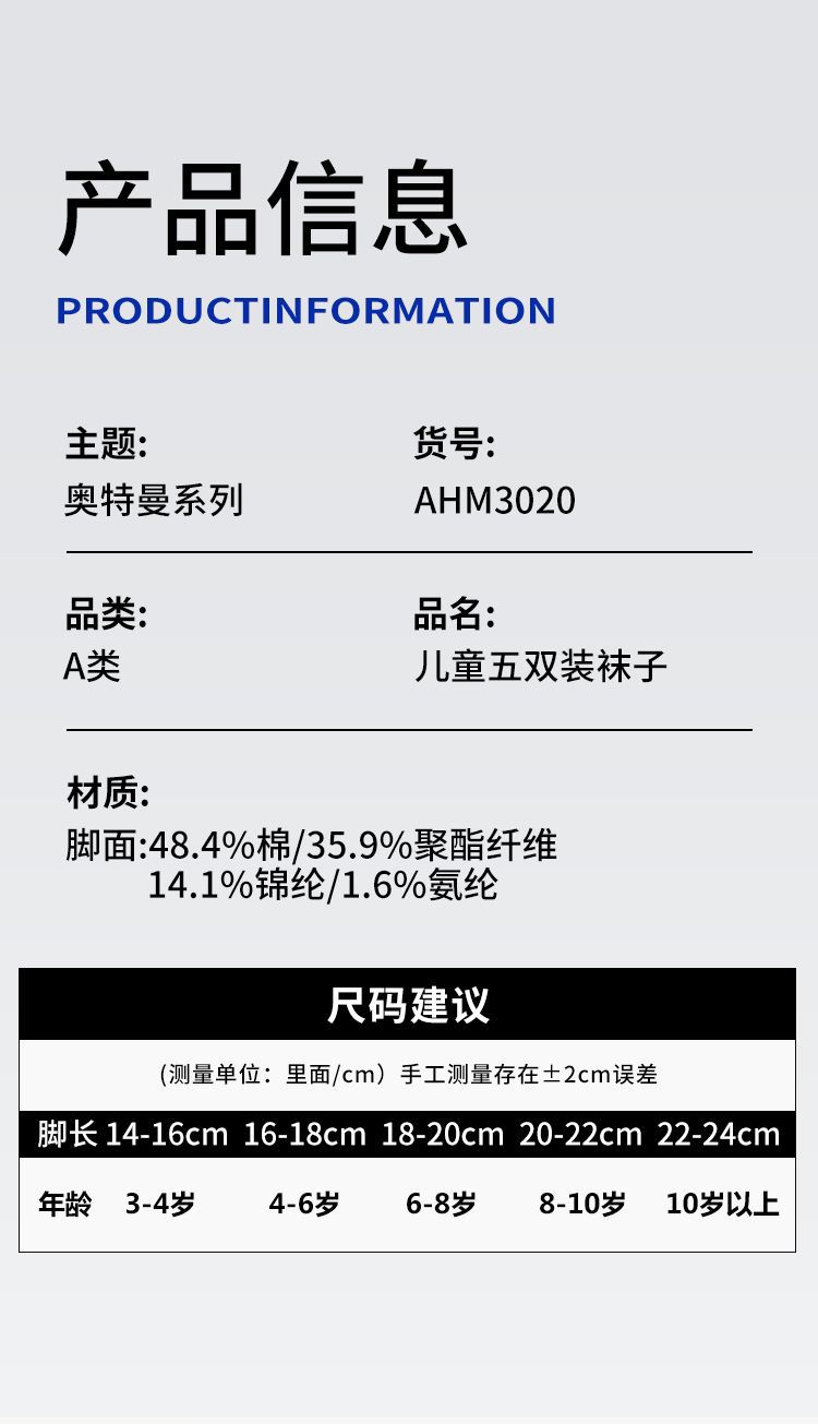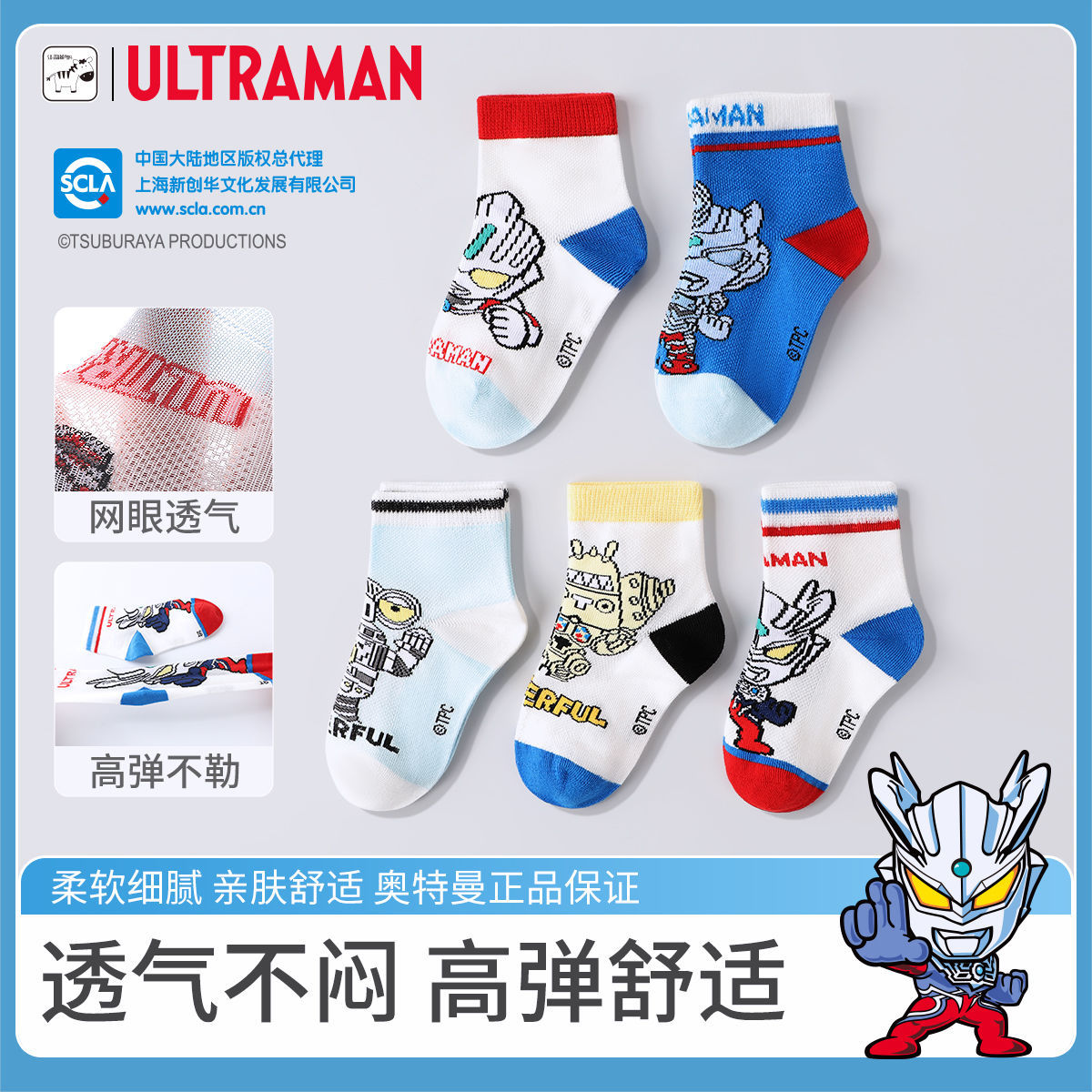 울트라맨 여름 메쉬 양말 남아용 어린이 면 만화 중목 양말 남아용 얇은 중목 양말 IP 콜라보