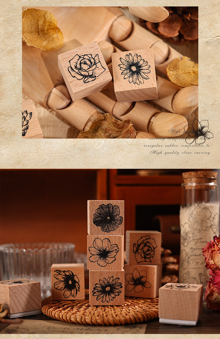 국경 간 꽃 꿀 언어 나무 손 계정 스탬프 복고풍 꽃 나무 스탬프 어린이 스탬프 공장 아울렛