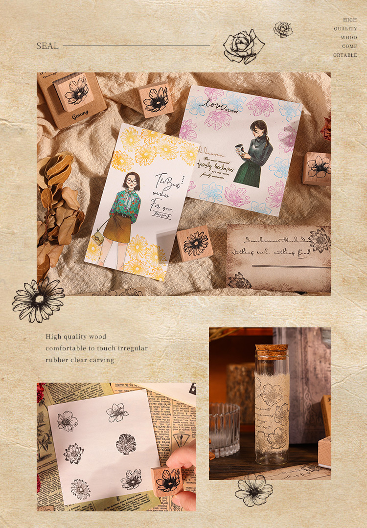 국경 간 꽃 꿀 언어 나무 손 계정 스탬프 복고풍 꽃 나무 스탬프 어린이 스탬프 공장 아울렛스토어 가기