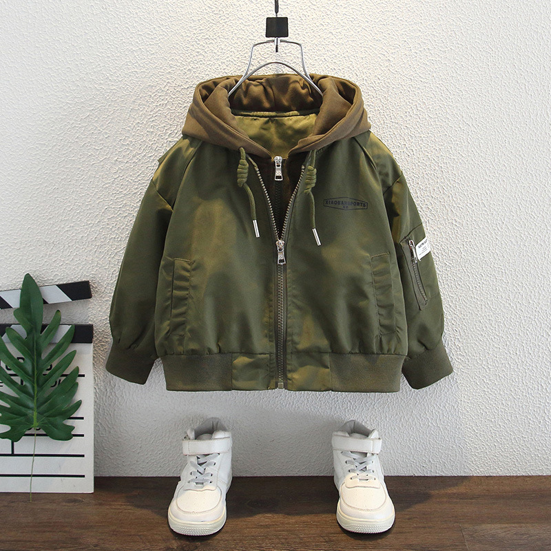 어린이 봄 코트 2025 새로운 소년 봄과 가을 후드 러쉬 옷 유행 아기 외부 재킷 최고 유행스토어 가기