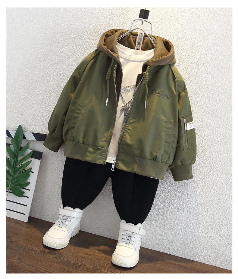 어린이 봄 코트 2025 새로운 소년 봄과 가을 후드 러쉬 옷 유행 아기 외부 재킷 최고 유행