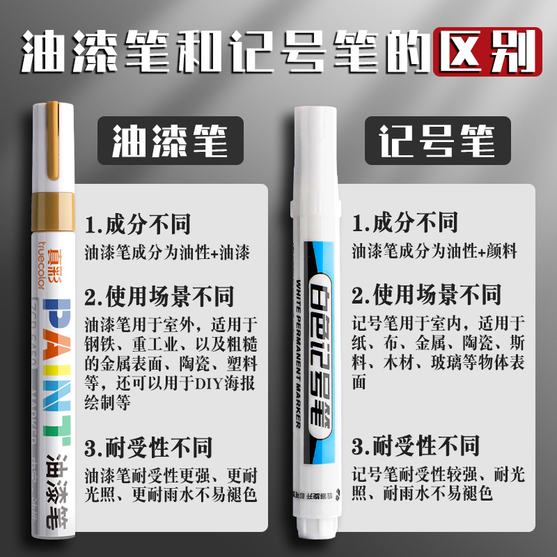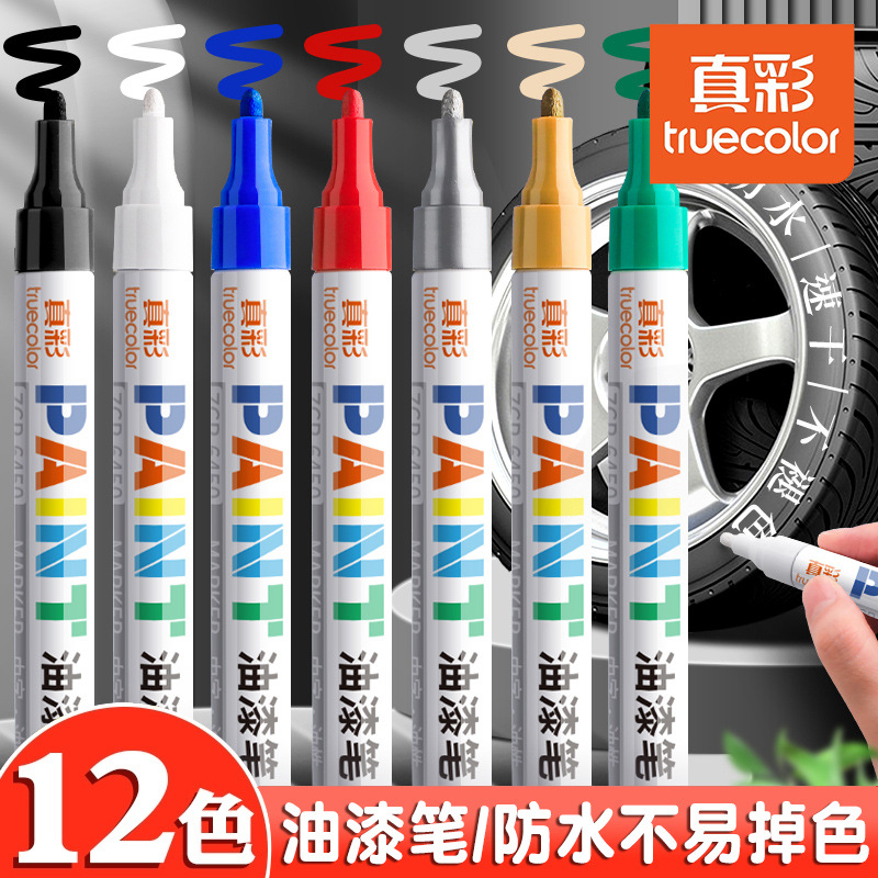 트루 컬러 페인트 펜 금속 페인트 펜 방수 타이어 마킹 마커 오일 페인트 펜 화이트 실버 레드스토어 가기