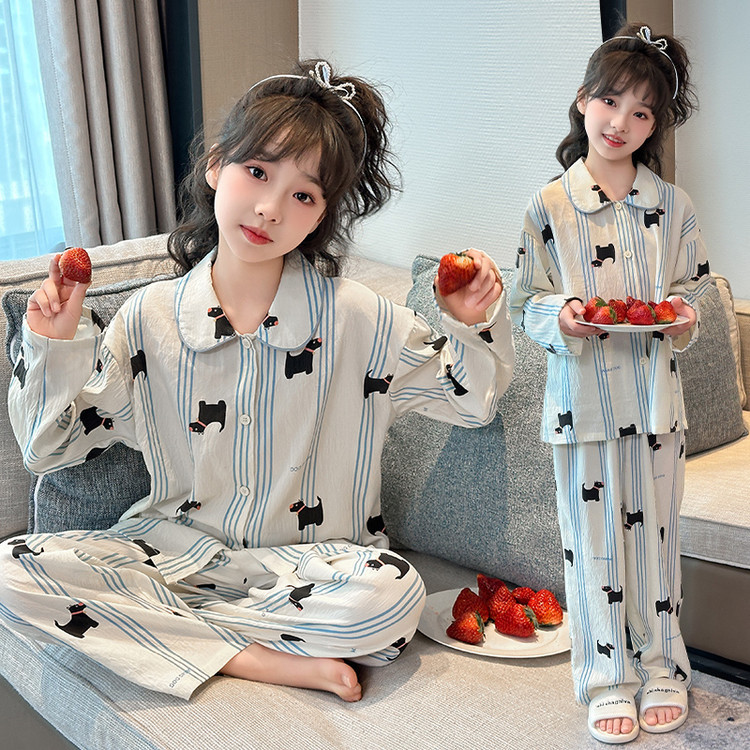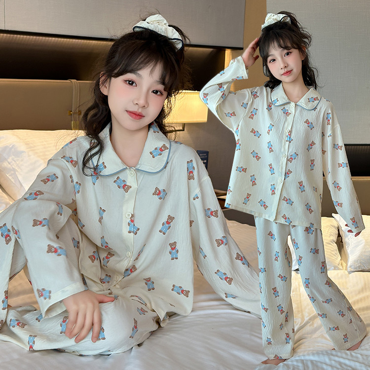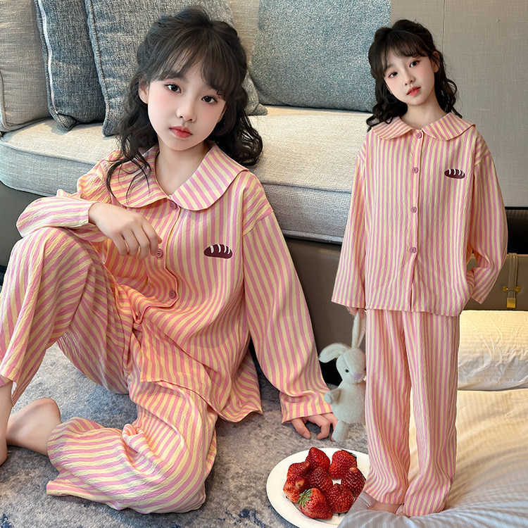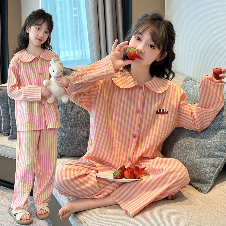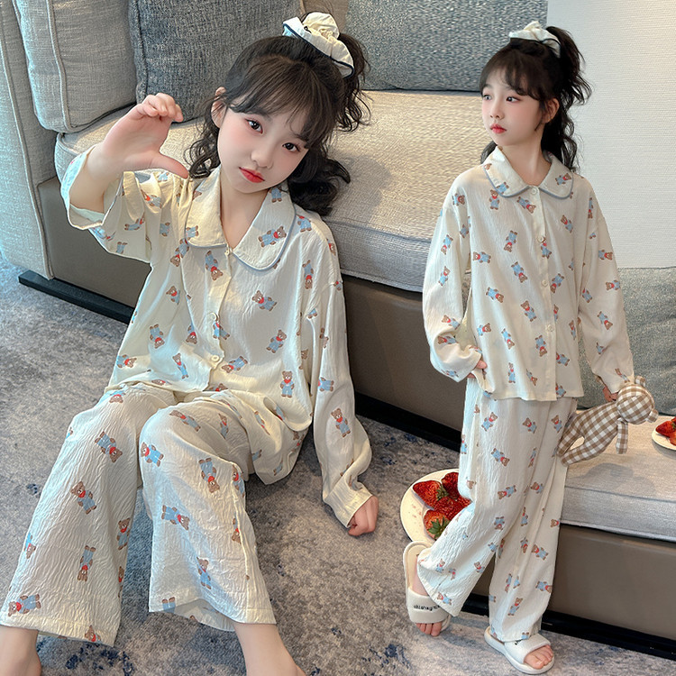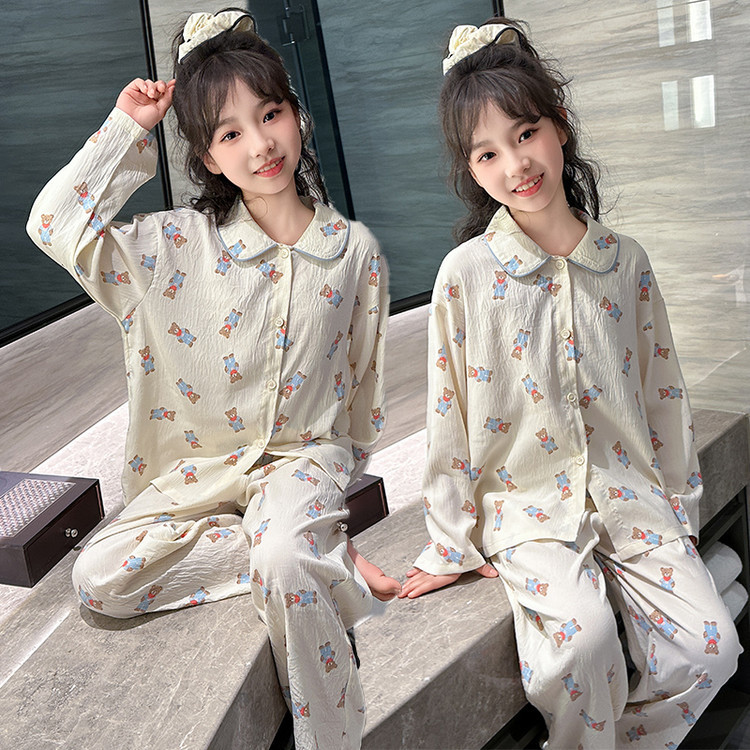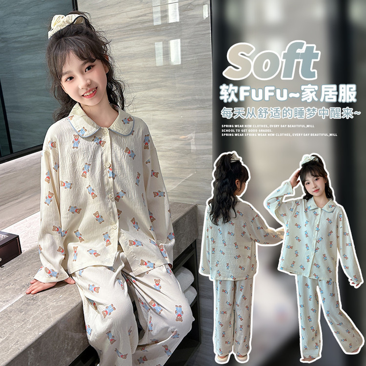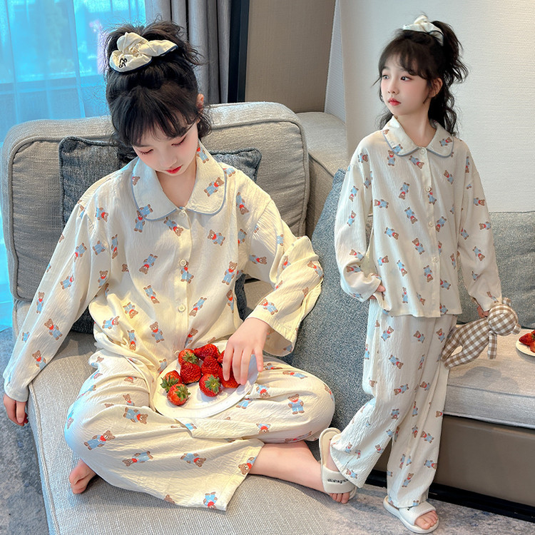 소녀 잠옷 2025 새로운 봄 만화 긴 소매 얇은 어린이 큰 어린이 집 옷 어린 소녀의 세트스토어 가기