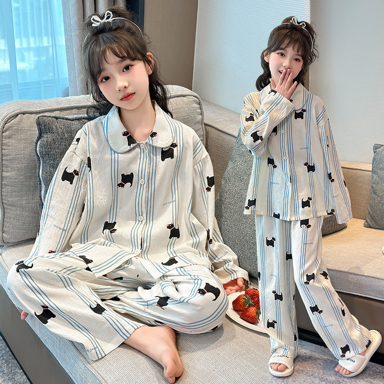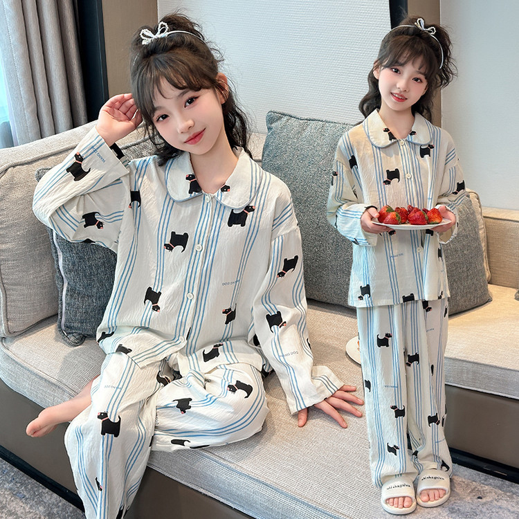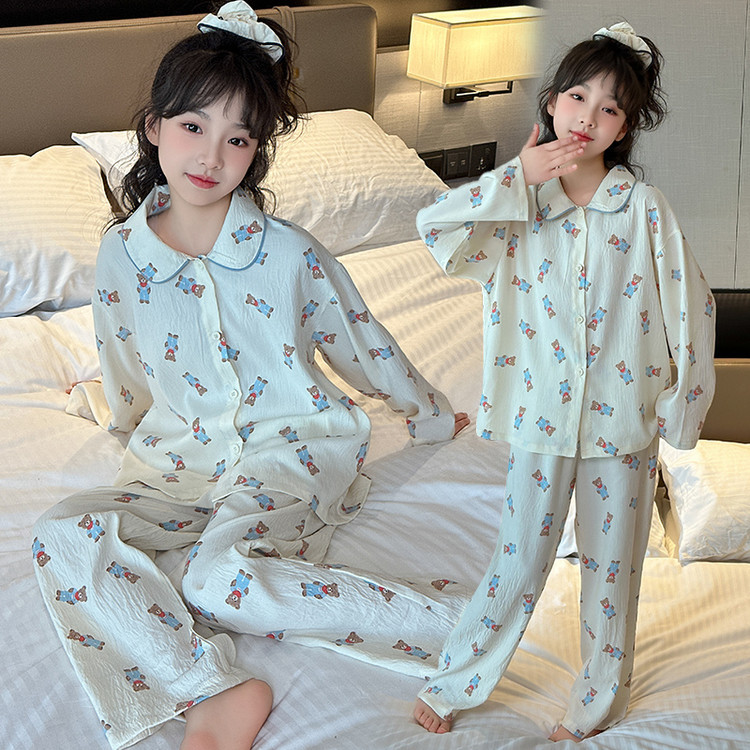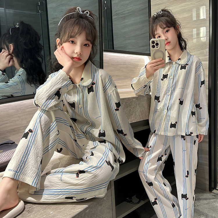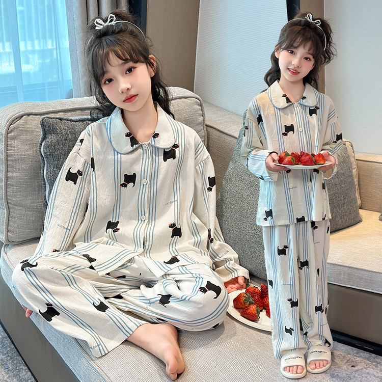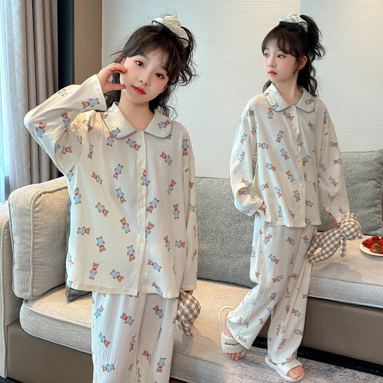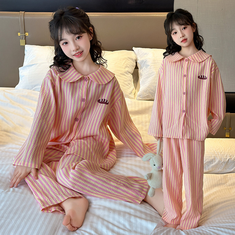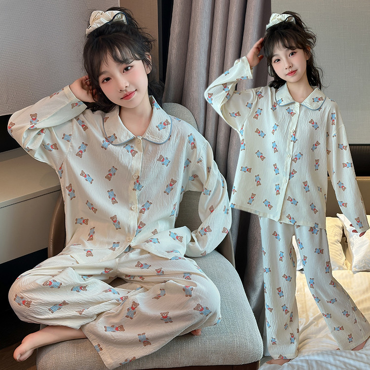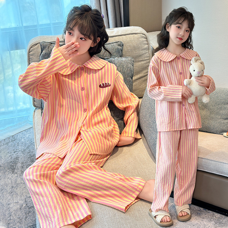 소녀 잠옷 2025 새로운 봄 만화 긴 소매 얇은 어린이 큰 어린이 집 옷 어린 소녀의 세트스토어 가기