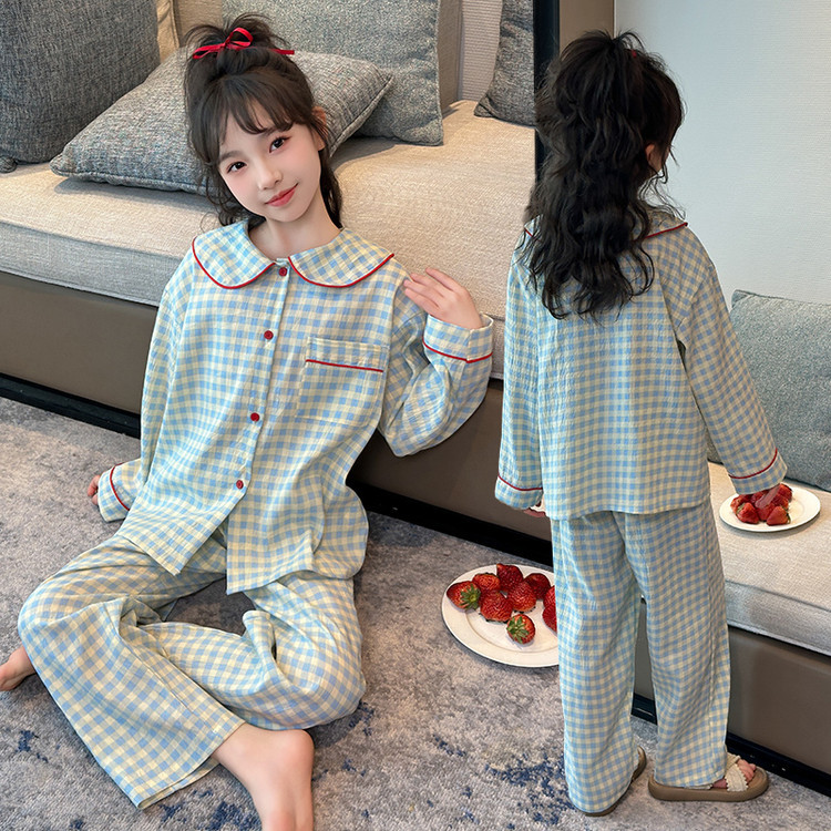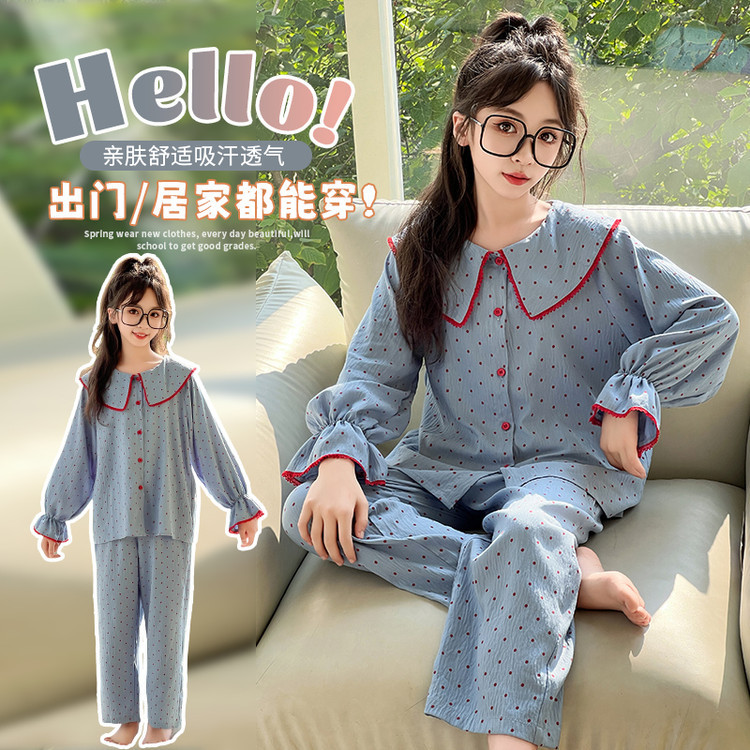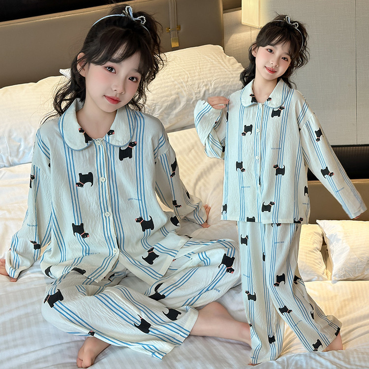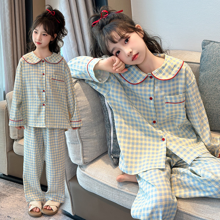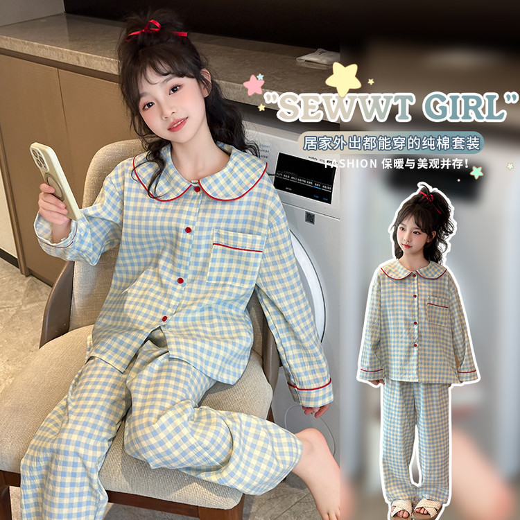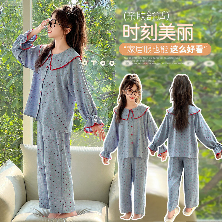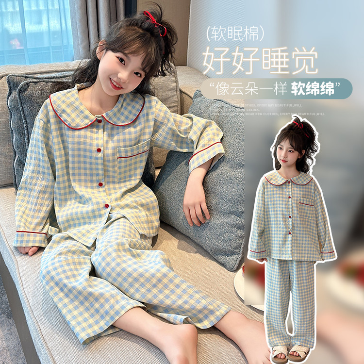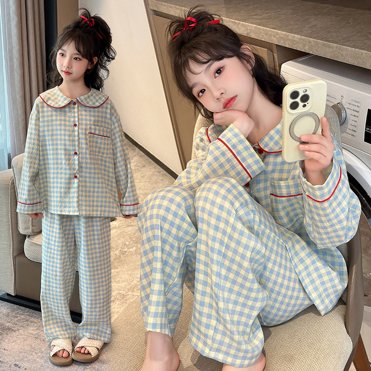 소녀 잠옷 2025 새로운 봄 만화 긴 소매 얇은 어린이 큰 어린이 집 옷 어린 소녀의 세트스토어 가기