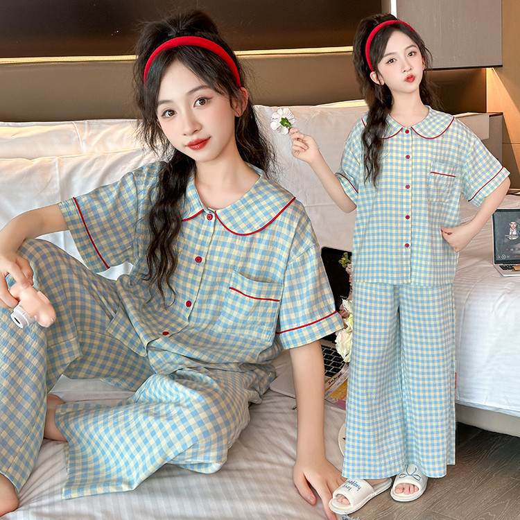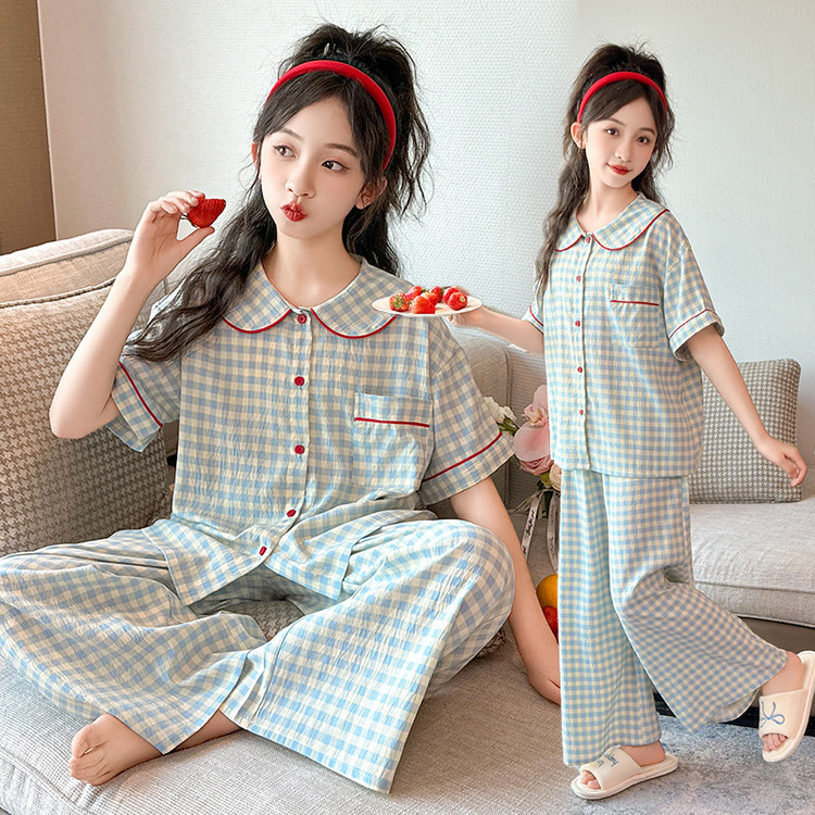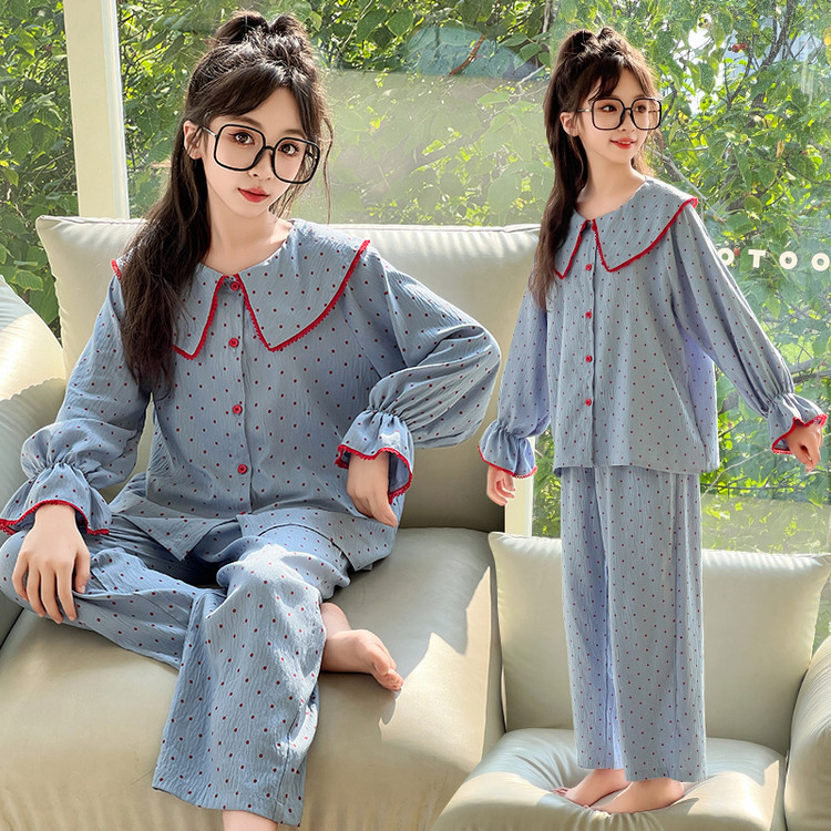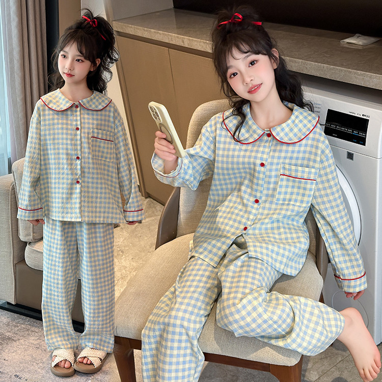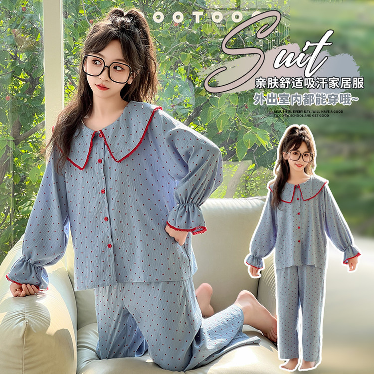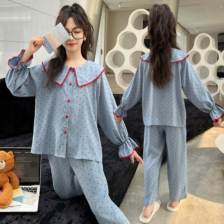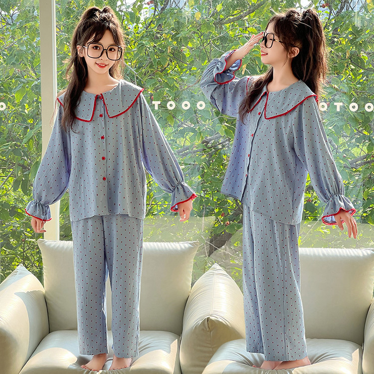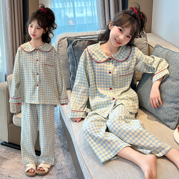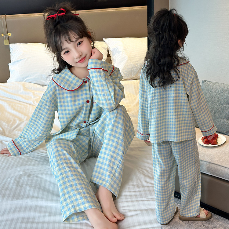 소녀 잠옷 2025 새로운 봄 만화 긴 소매 얇은 어린이 큰 어린이 집 옷 어린 소녀의 세트스토어 가기