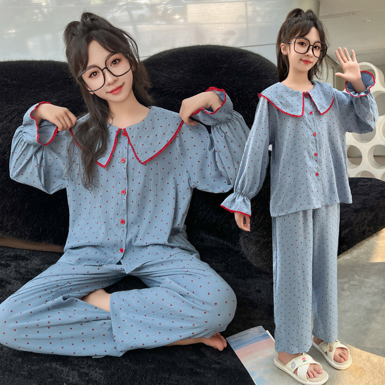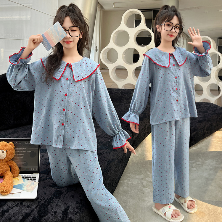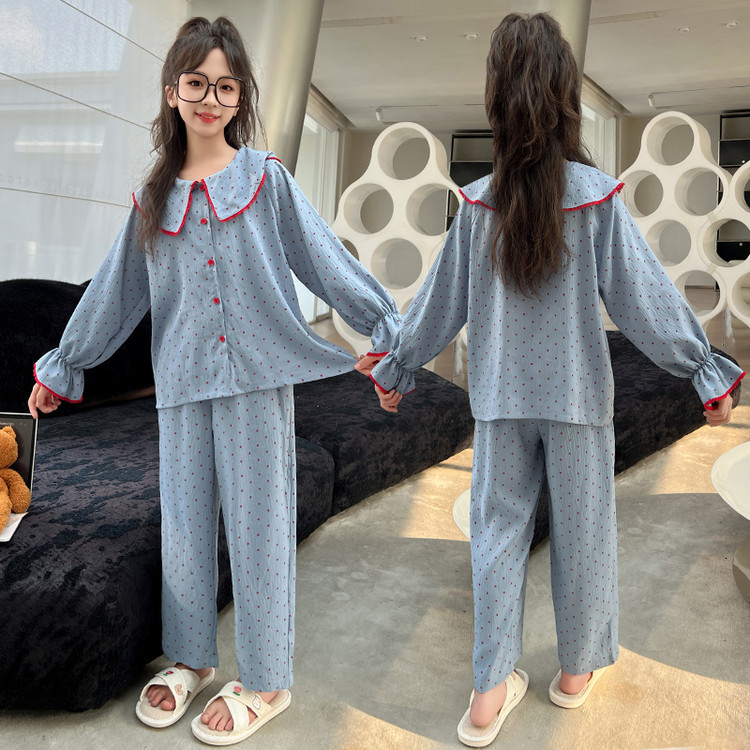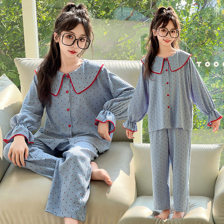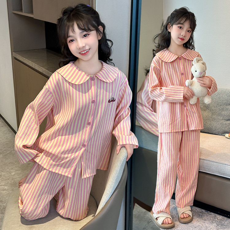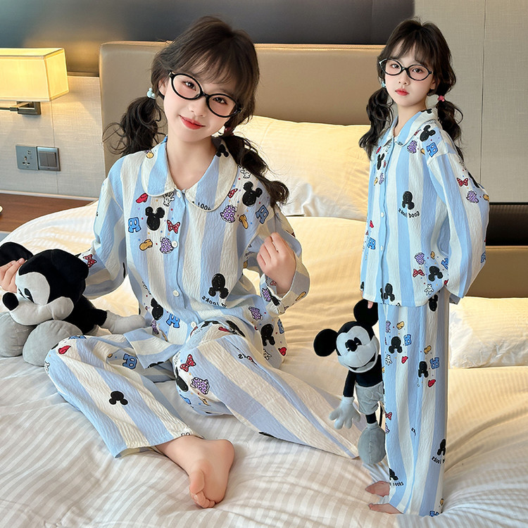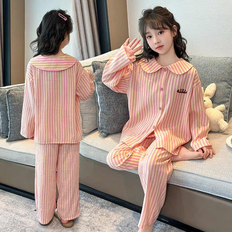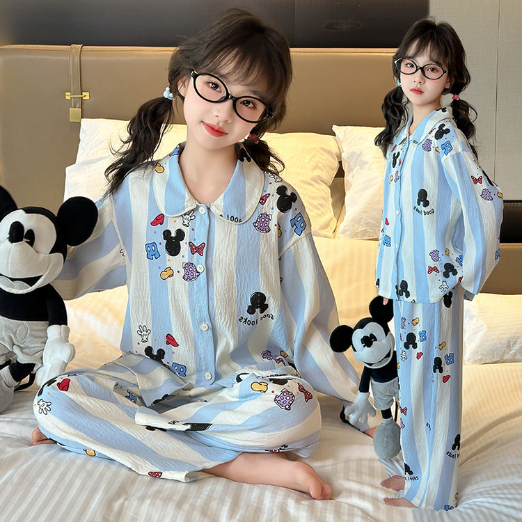 소녀 잠옷 2025 새로운 봄 만화 긴 소매 얇은 어린이 큰 어린이 집 옷 어린 소녀의 세트
