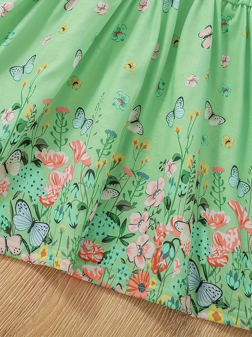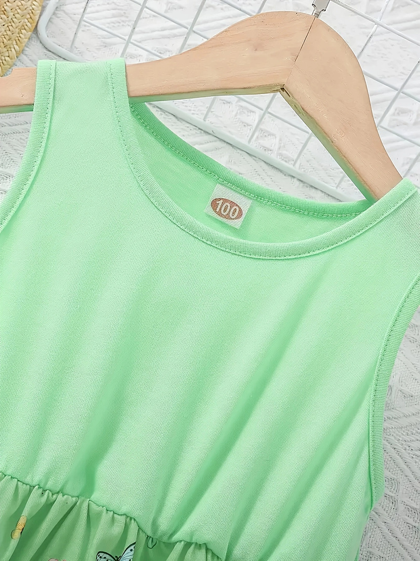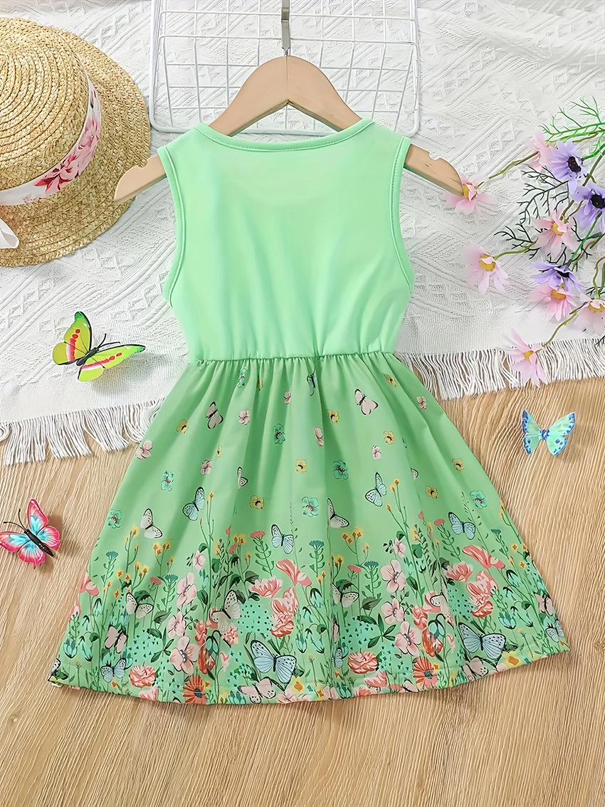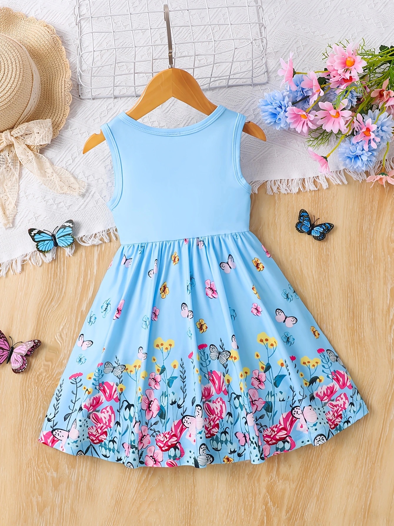 국경 간 INS 어린이와 소녀 여름 민소매 나비 꽃 인쇄 둥근 목 꽉 허리 디스플레이 원피스 조수스토어 가기