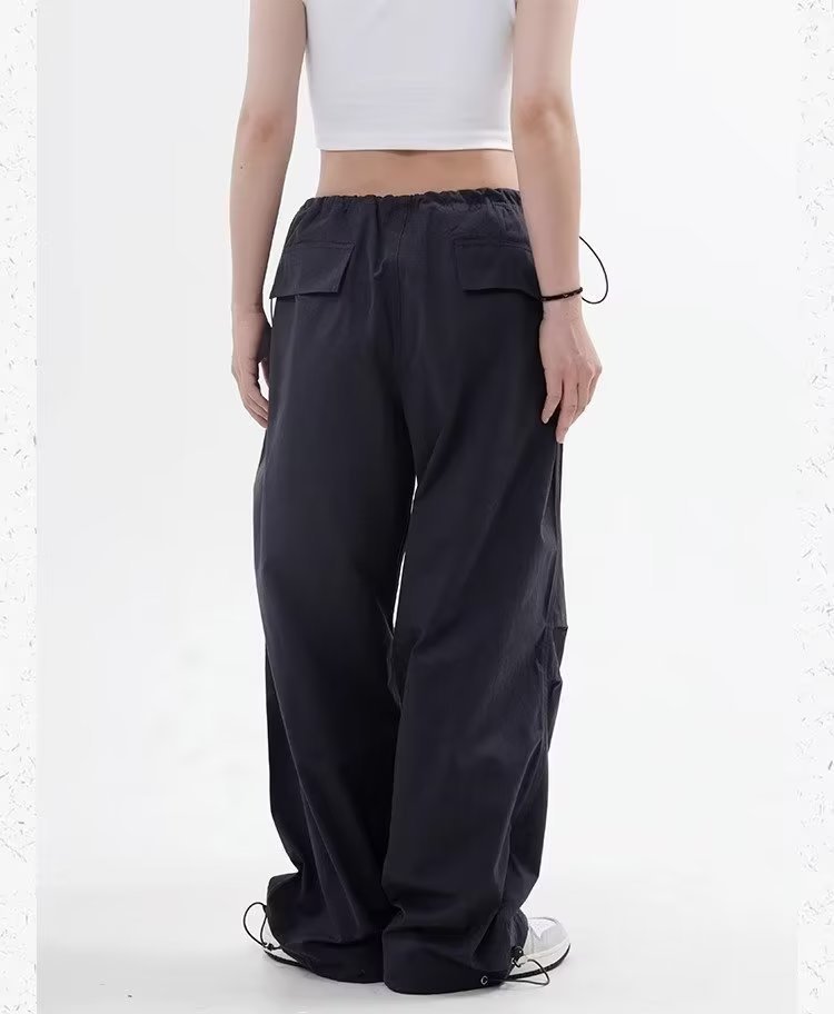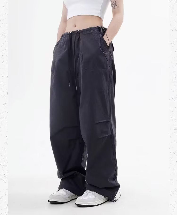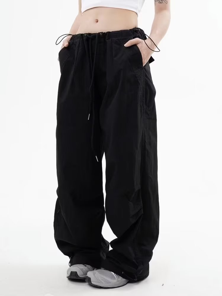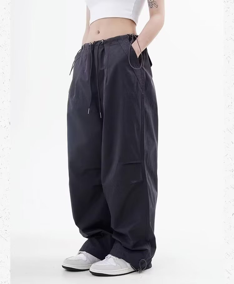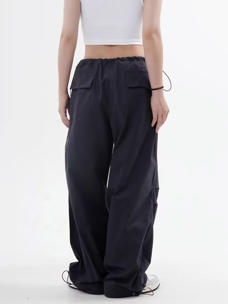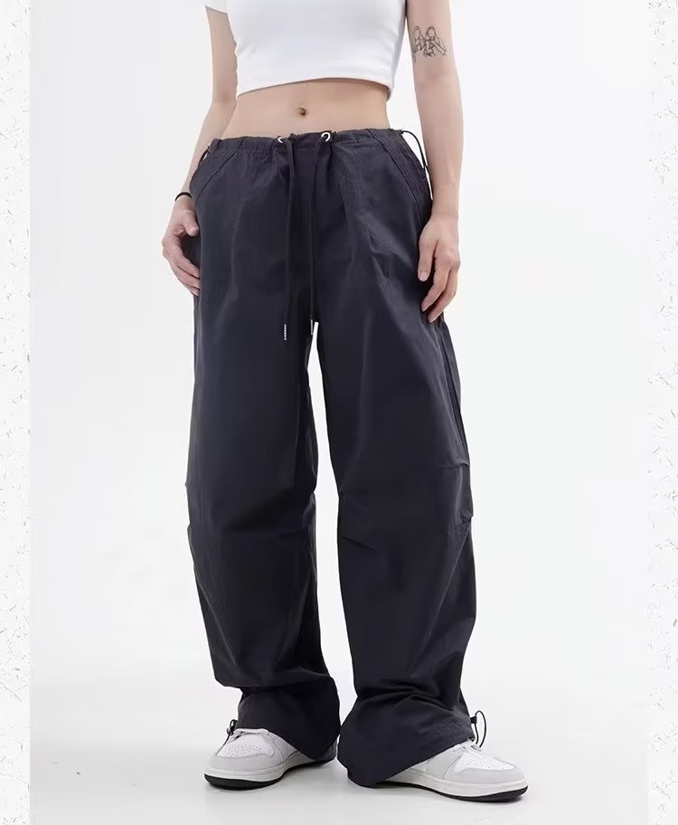 아메리칸 스타일 레트로 핫 소녀 디자인 센스 드로우 스트링 군중 바지 여성의 2023 여름 얇은 슬리밍 넓은 다리 높은 허리 걸레 바지스토어 가기