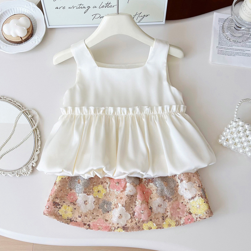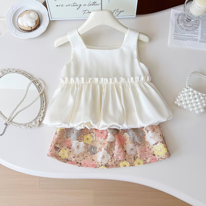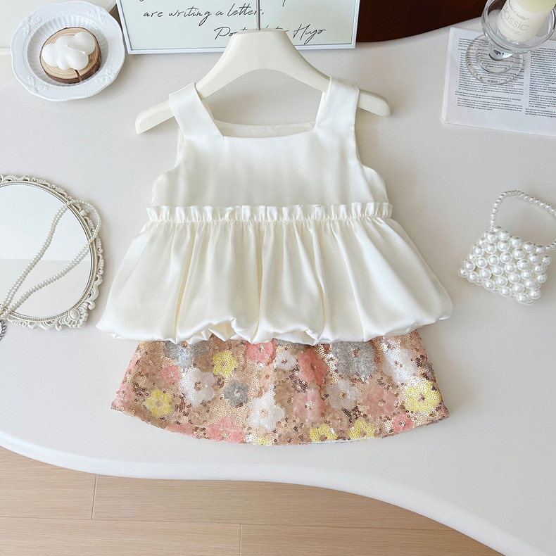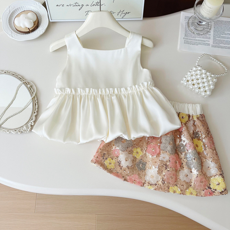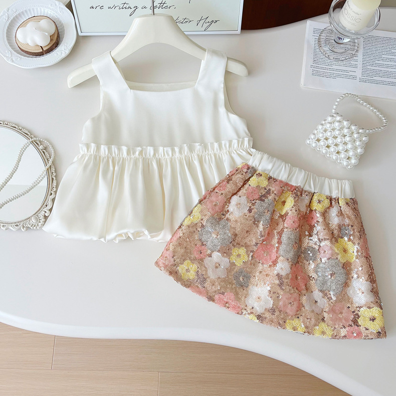 여자 패션 조끼 속편 원피스 세트 2025 여름 새 소녀 아기 세련된 여름 치마 투피스 트렌디스토어 가기