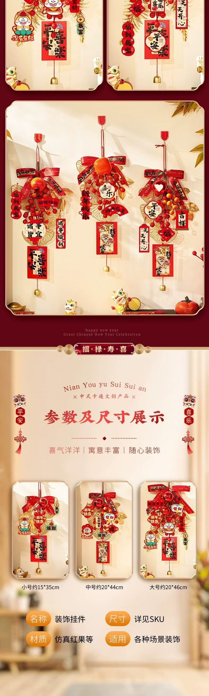 2025 년 설날 행운의 과일 펜던트 뱀의 해 새 입구 펜던트 봄 축제 새해 장식 분위기 소품