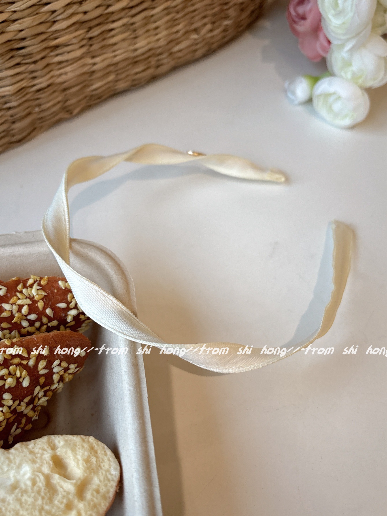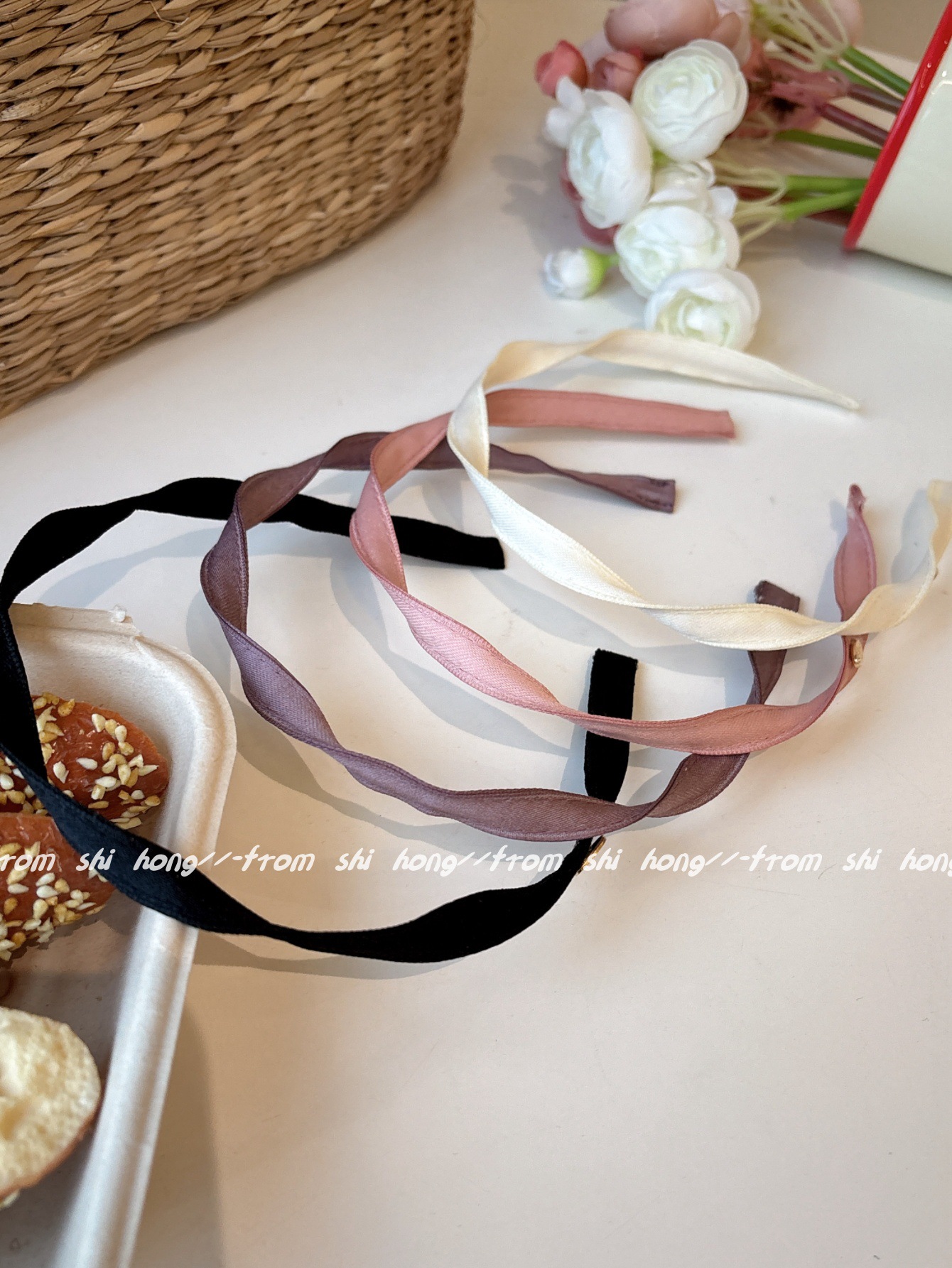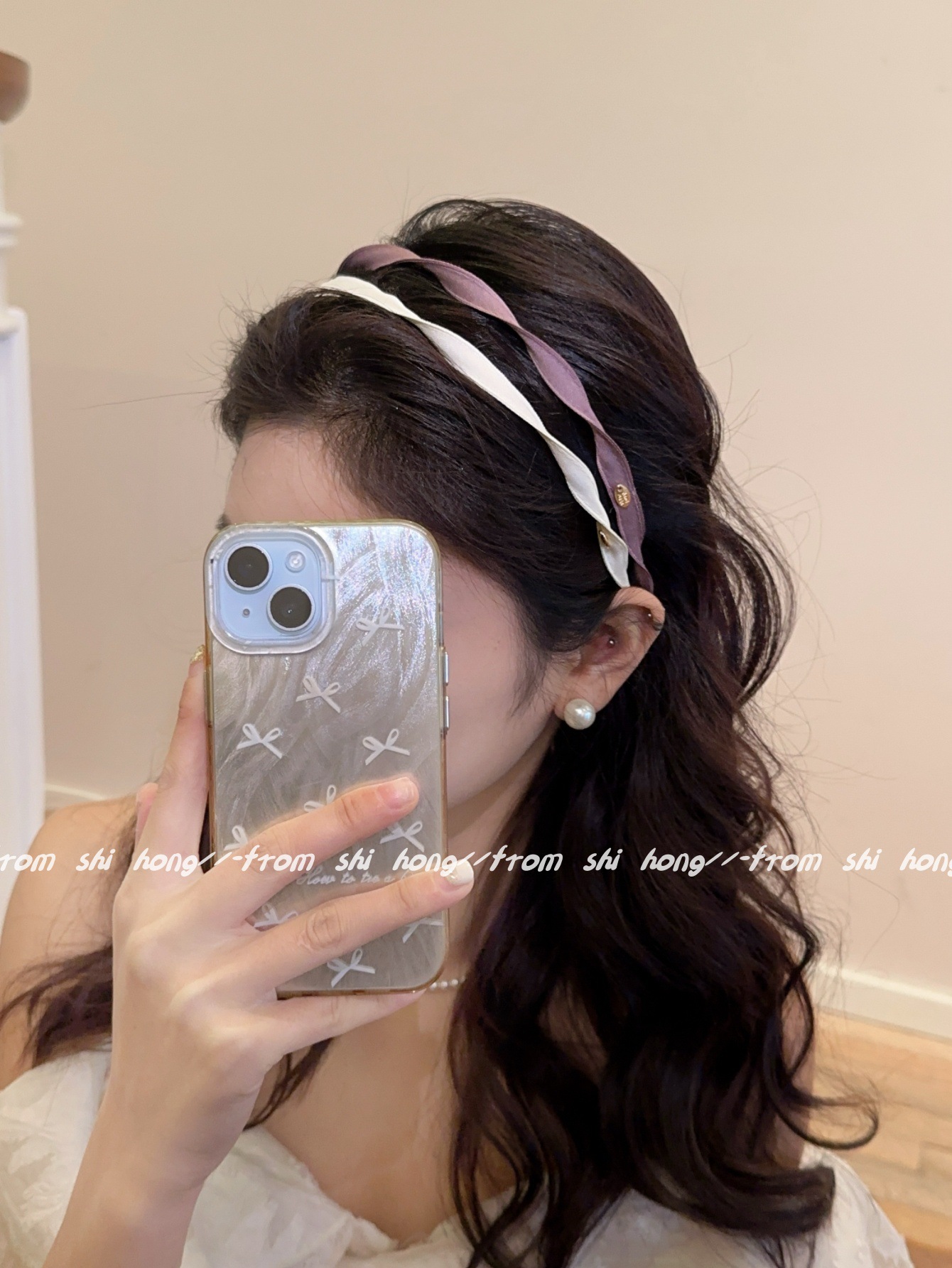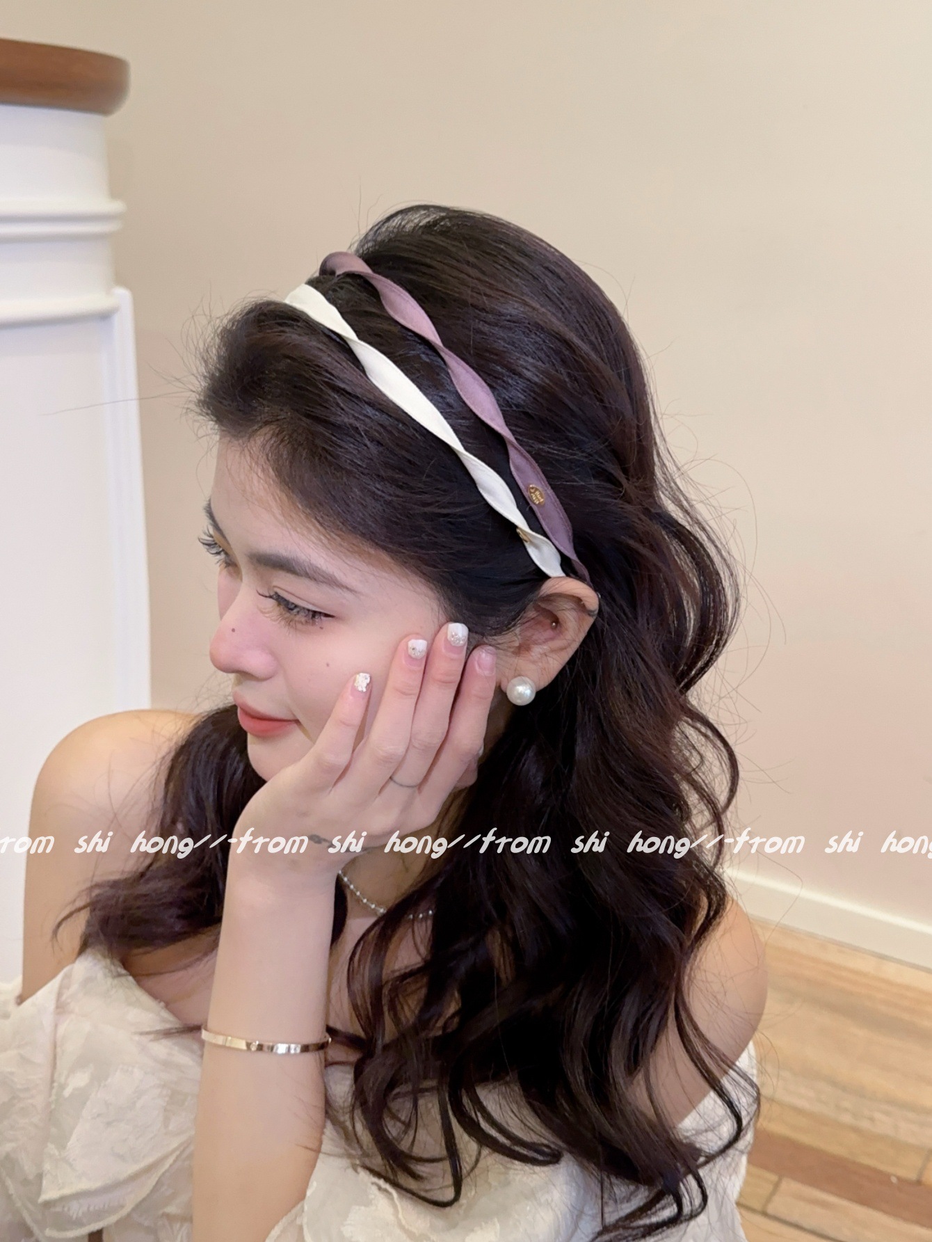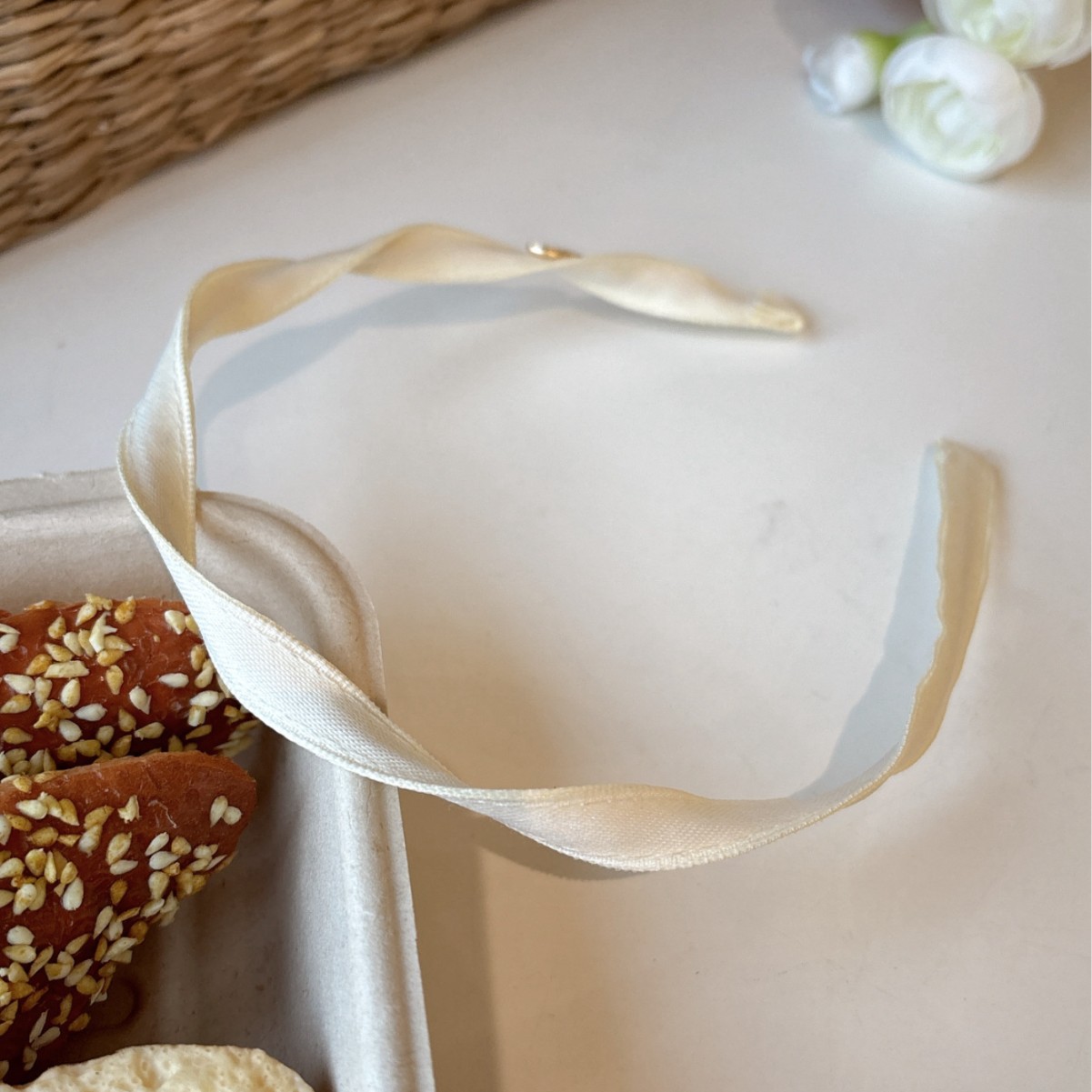 • 흰색 나선형 머리띠