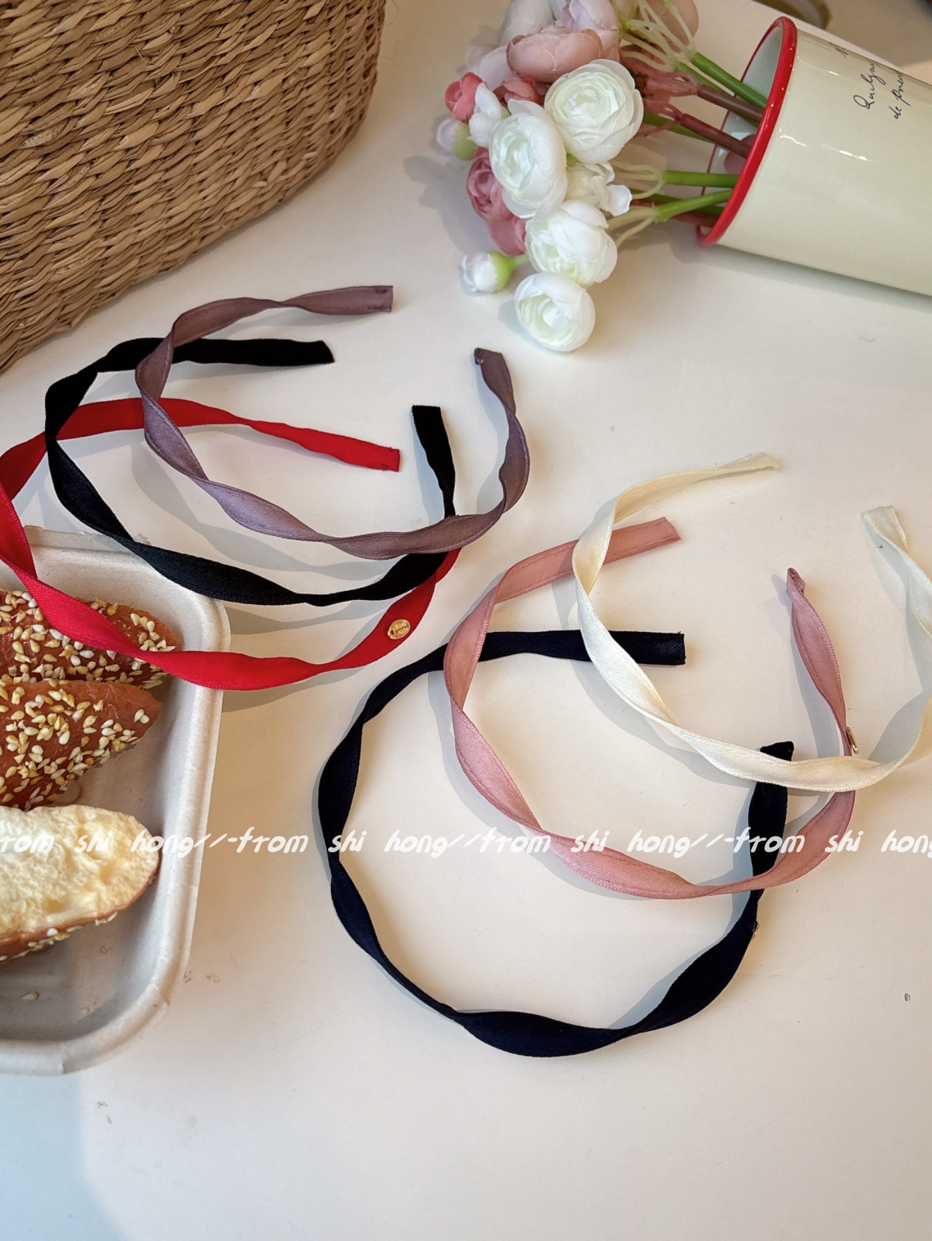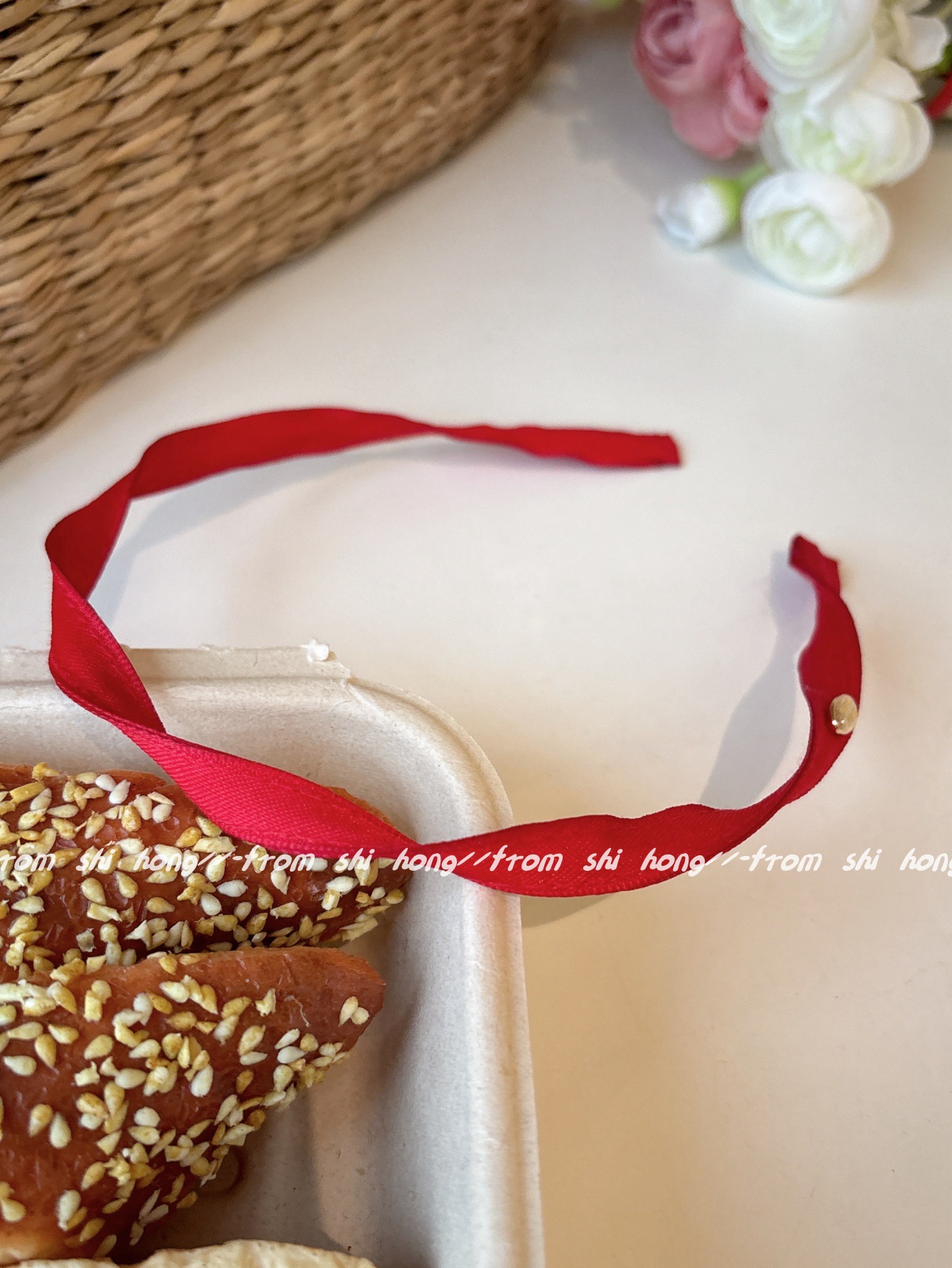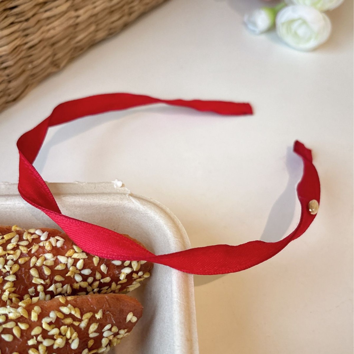 • 빨간색 나선형 머리띠