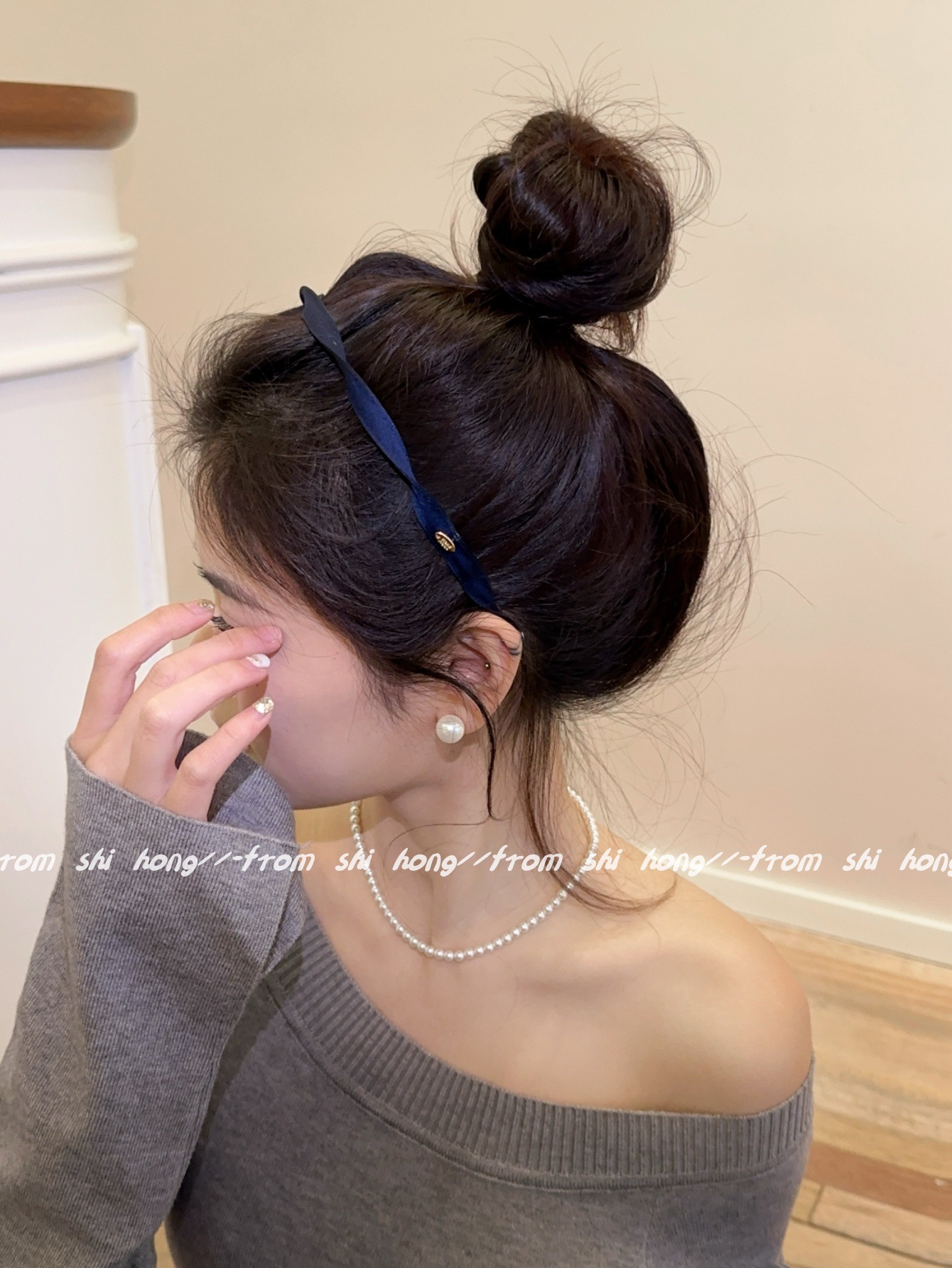 • 네이비 블루 나선형 머리띠
