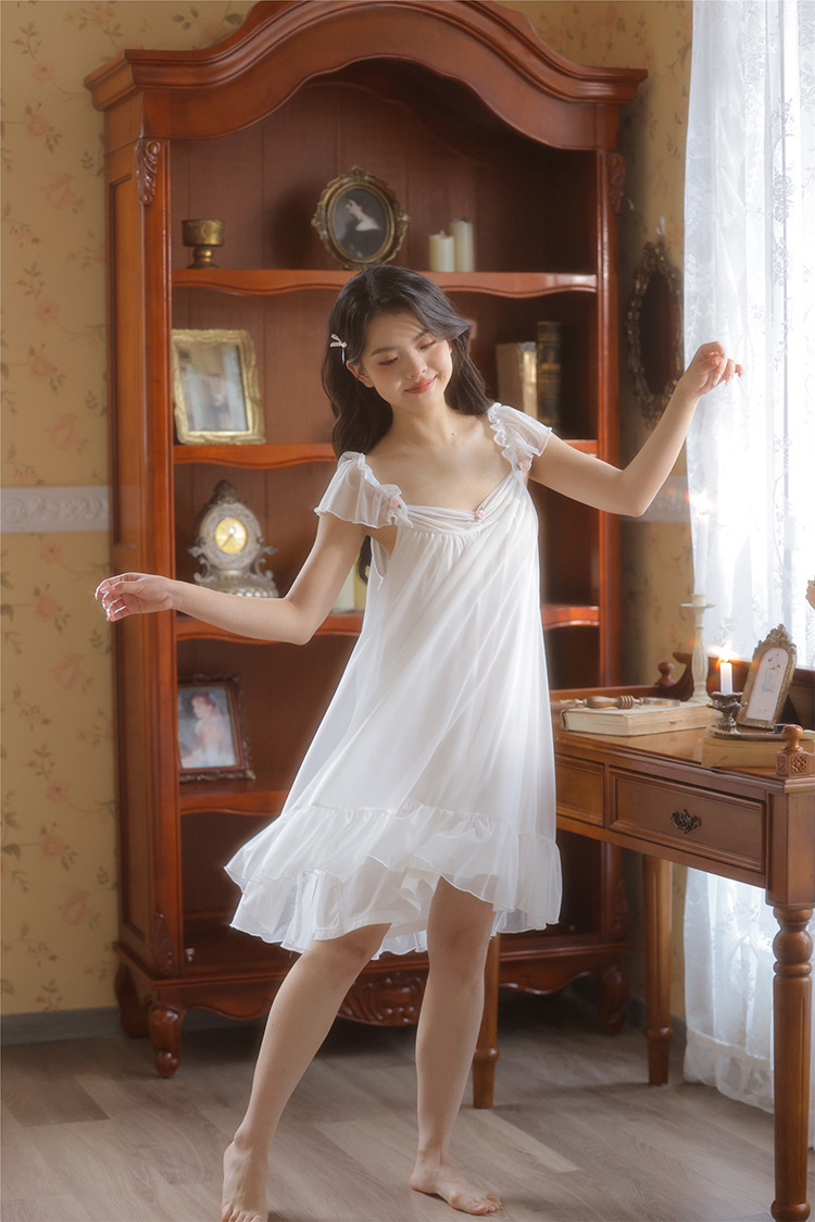 프렌치 프린세스 스타일 슬링 나이트가운 레트로 네크라인 달콤한 섹시 로즈 가리 나이트웨어 경량 편안한 스커트스토어 가기