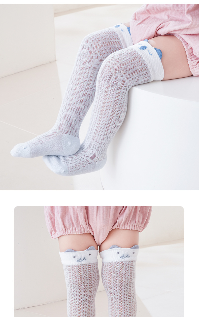 여름 초박형 메쉬 아기 스타킹 3 차원 만화 아기 모기 양말 무릎 높이 다리 유아면 양말