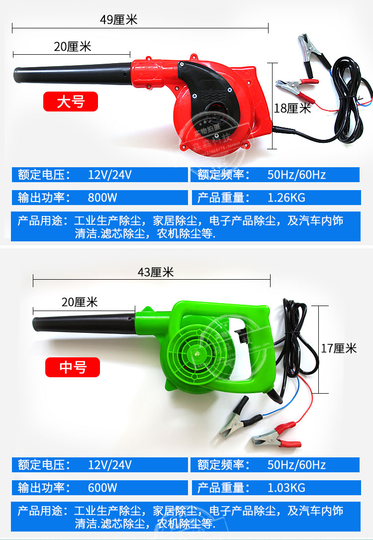 자동차 12v24 볼트 DC 배터리 헤어 드라이어 고출력 송풍기 공기 필터 집진기 농업 차량