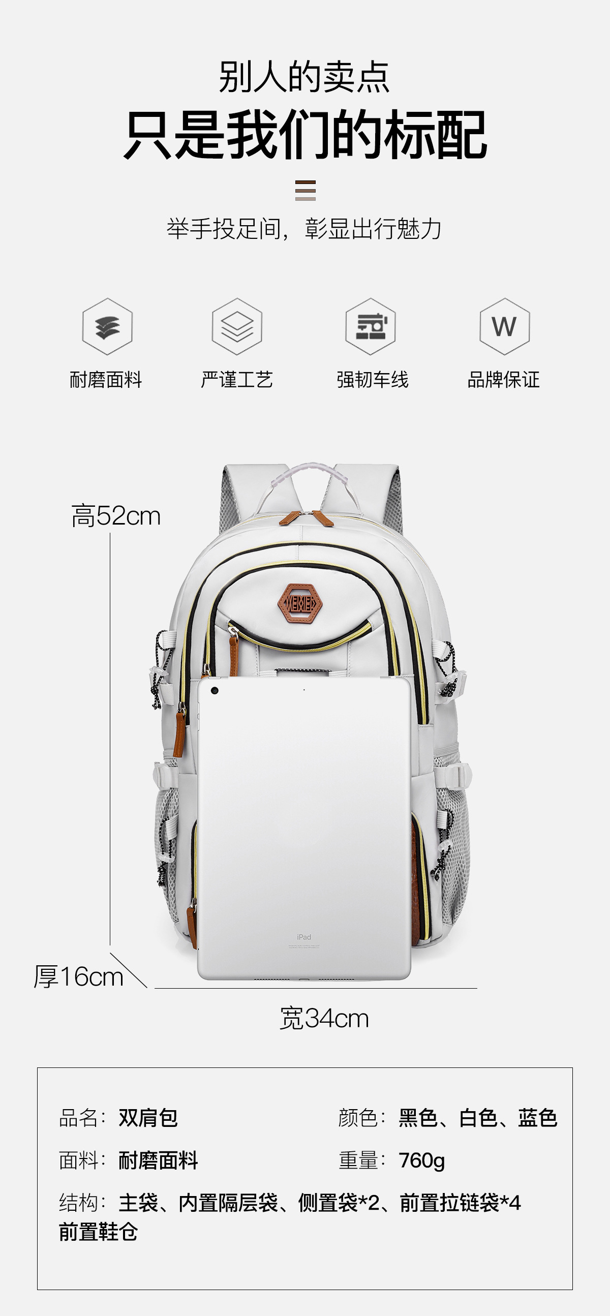 WEIXIER 높은 가치의 캐주얼 배낭 대용량 신발 빈 여행 가방 방수 다기능 등산 가방스토어 가기