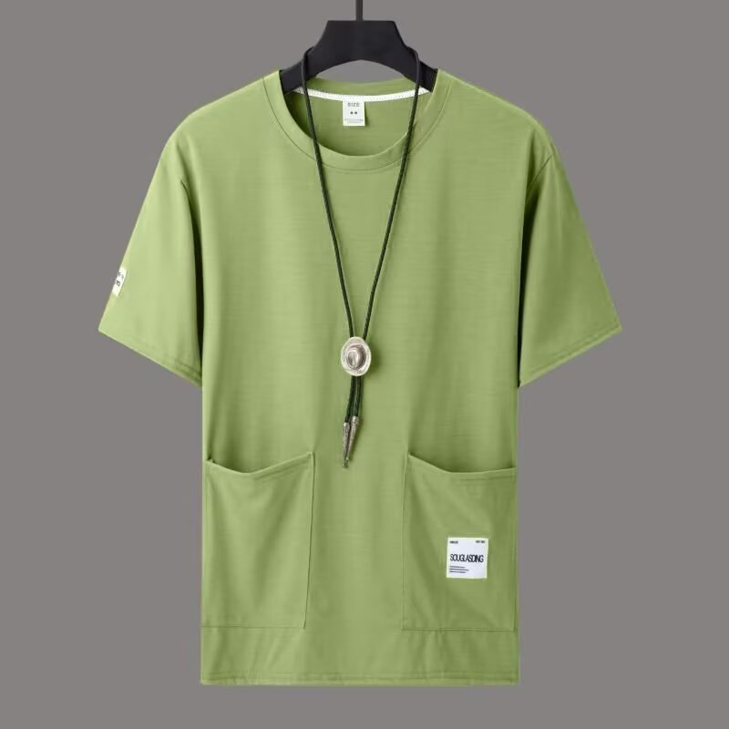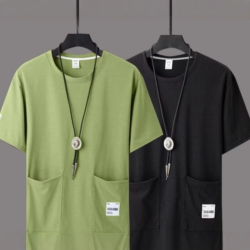 봄과 여름 새로운 반팔 티셔츠 포켓 디자인 남성 대형 반팔 느슨한 얇은 캐주얼 탑스토어 가기