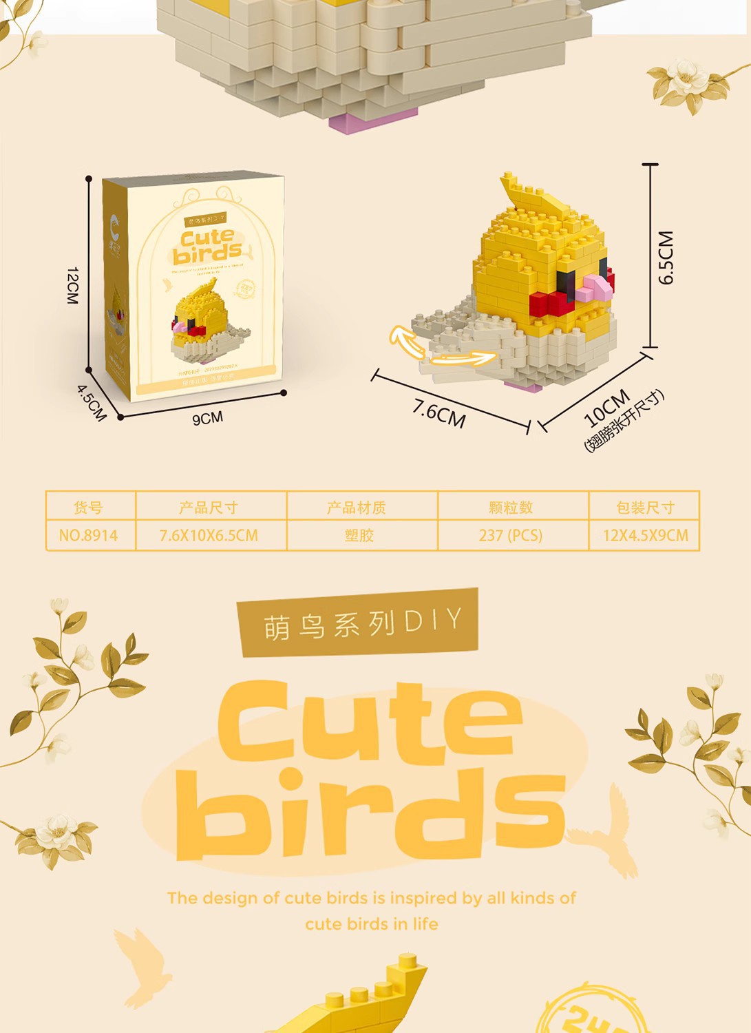 • 8909-8920 귀여운 새 12개 세트 + 아크릴 상자 [디스플레이 상자]