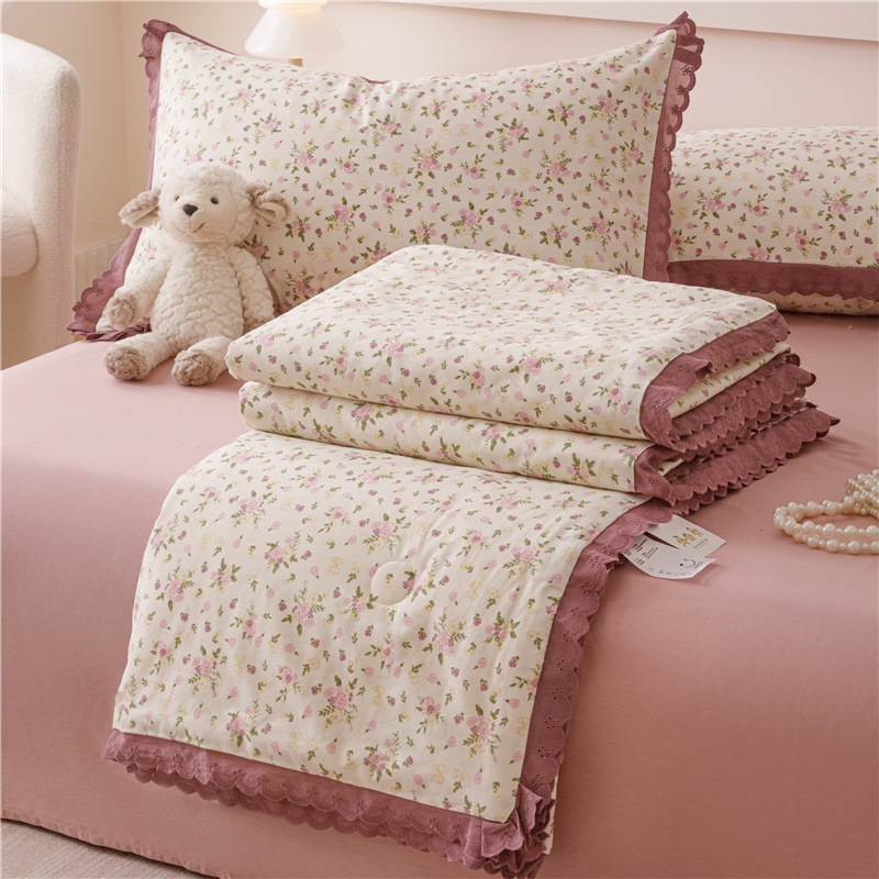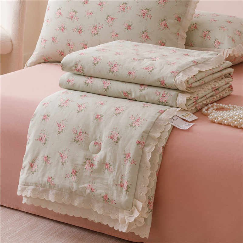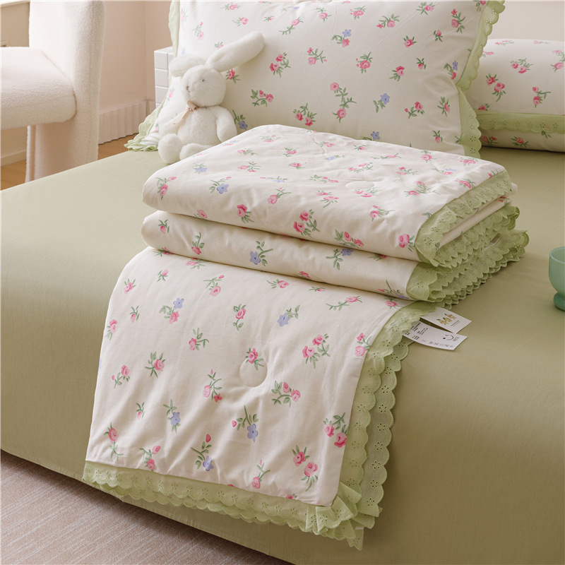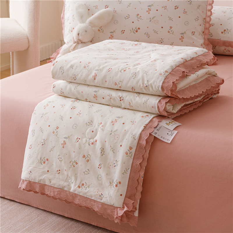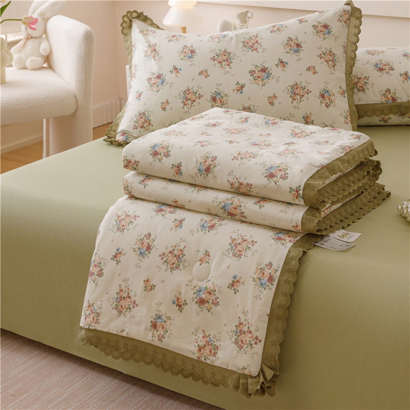 2025 새로운 한국 스타일 작은 꽃 콩 섬유 여름 이불 4 종 세트 100 올면 여름 시원한 이불 에어컨 이불 더블스토어 가기