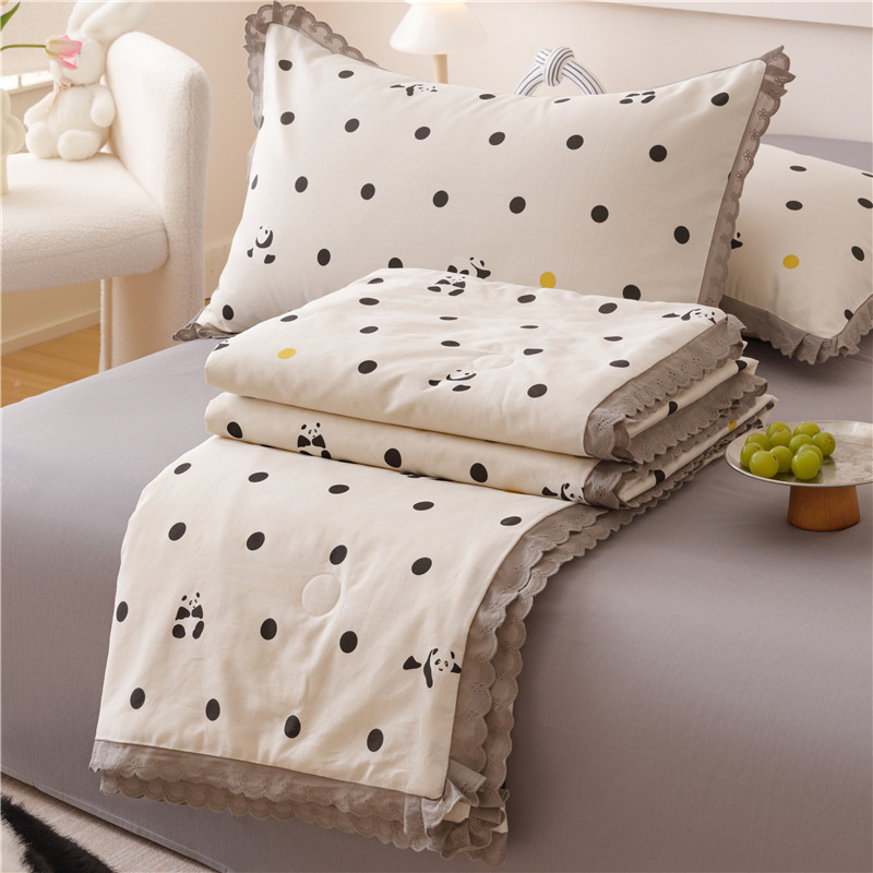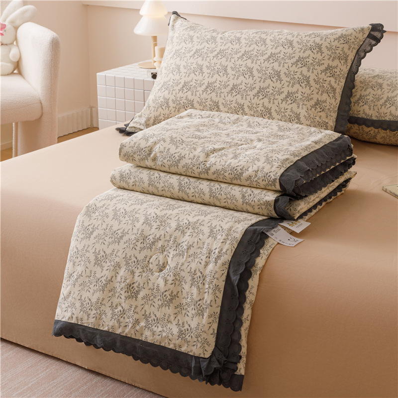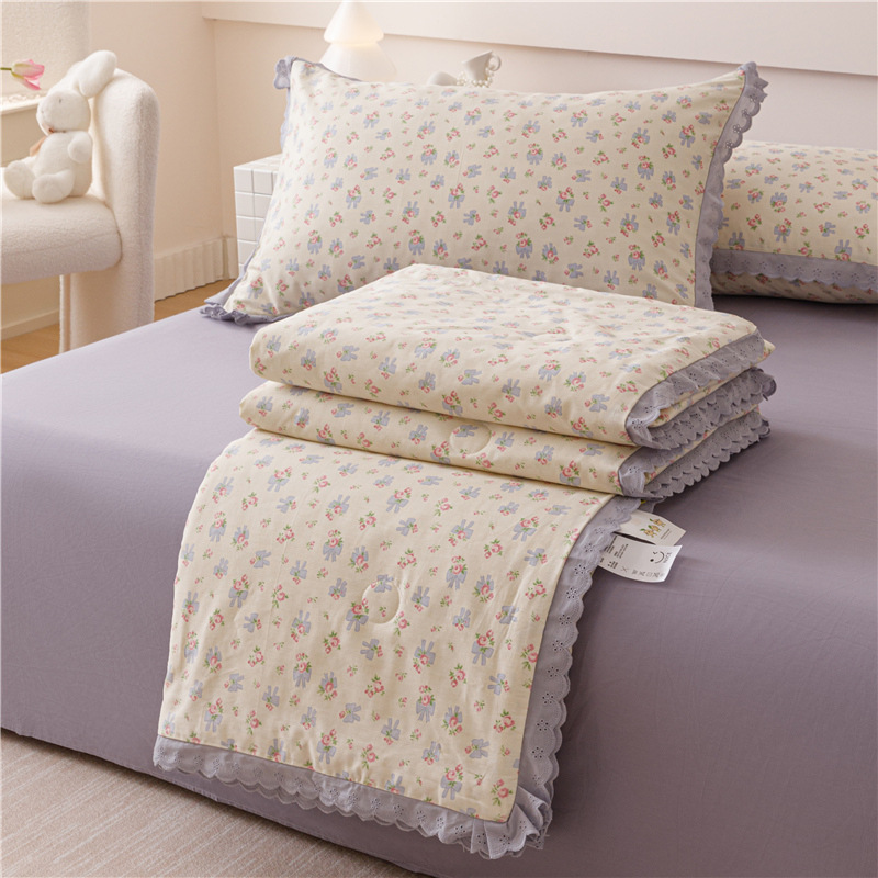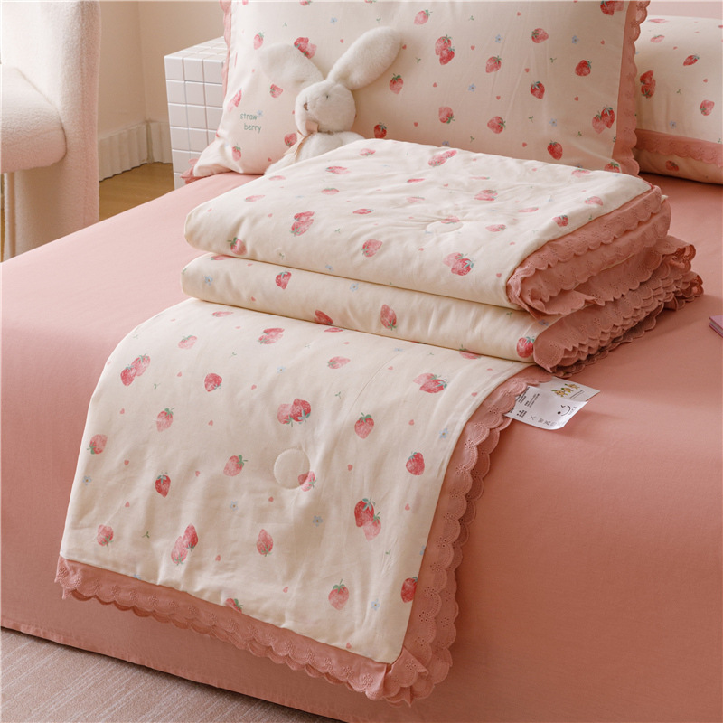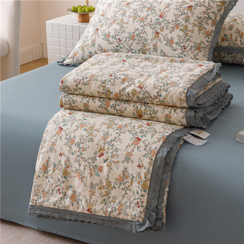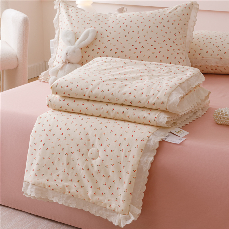 2025 새로운 한국 스타일 작은 꽃 콩 섬유 여름 이불 4 종 세트 100 올면 여름 시원한 이불 에어컨 이불 더블스토어 가기