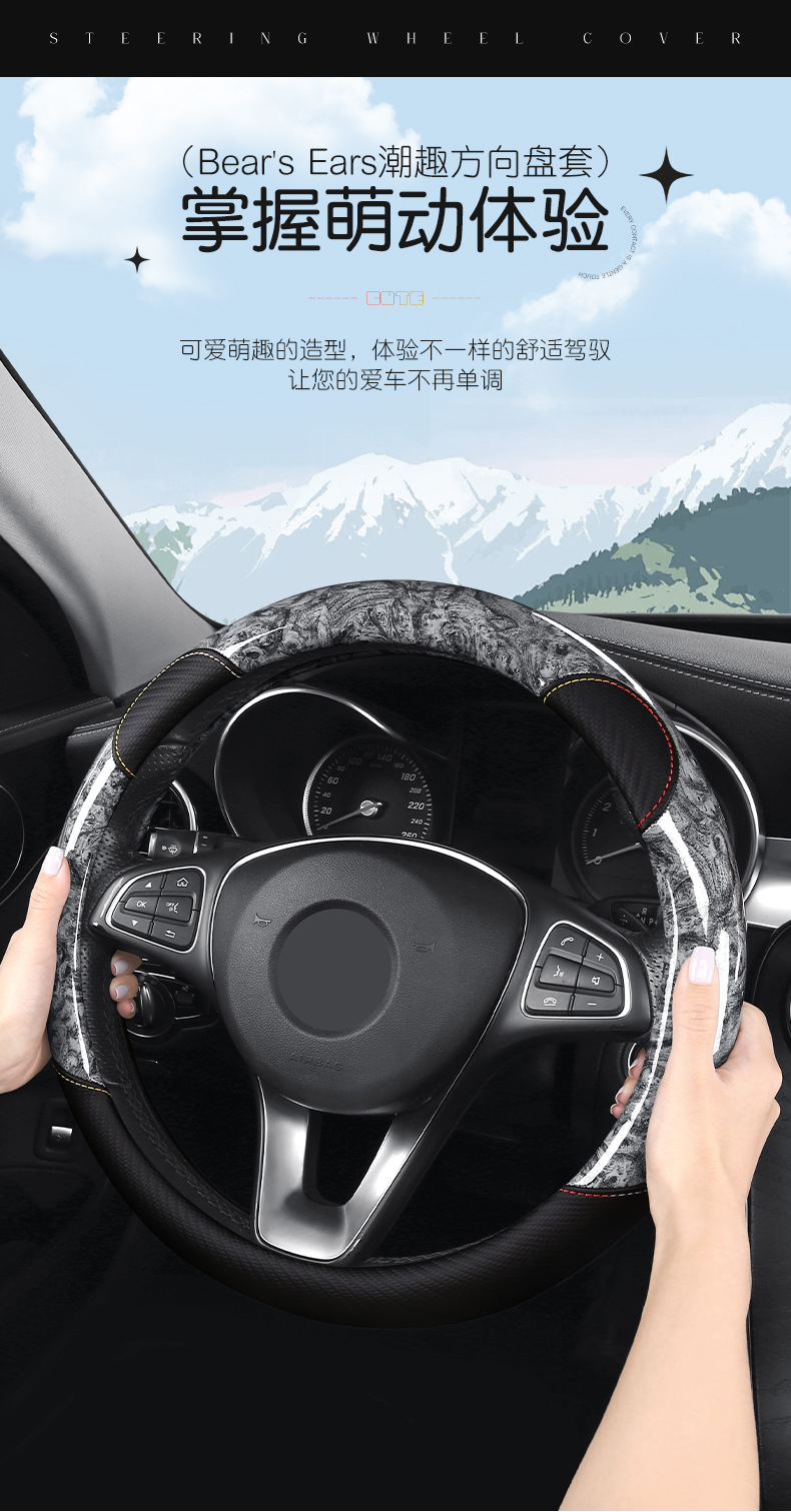 공장 도매 사계절 보편적 인 미끄럼 방지 땀 흡수성 하이 엔드 크리스탈 복숭아 나무 패턴 자동차 스티어링 휠 커버 보호 커버스토어 가기