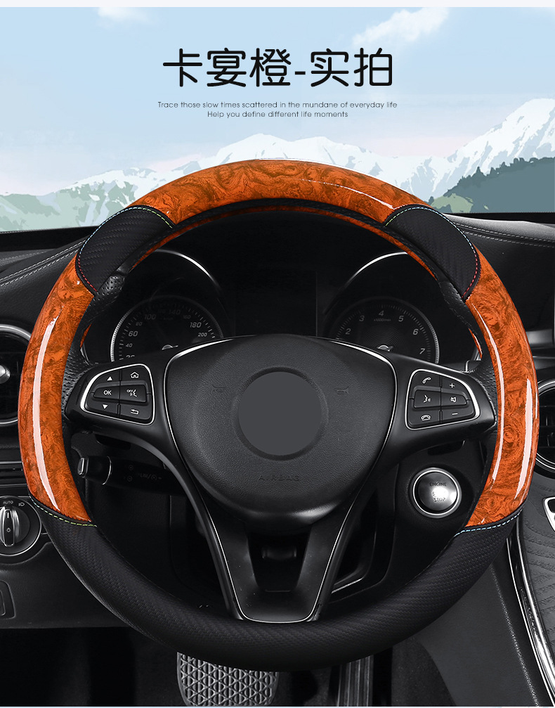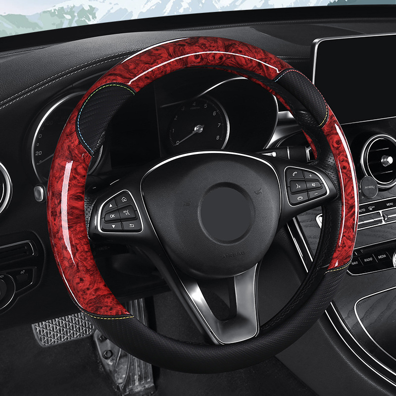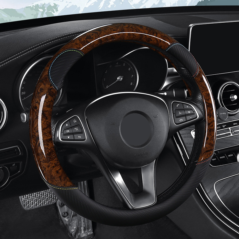 공장 도매 사계절 보편적 인 미끄럼 방지 땀 흡수성 하이 엔드 크리스탈 복숭아 나무 패턴 자동차 스티어링 휠 커버 보호 커버