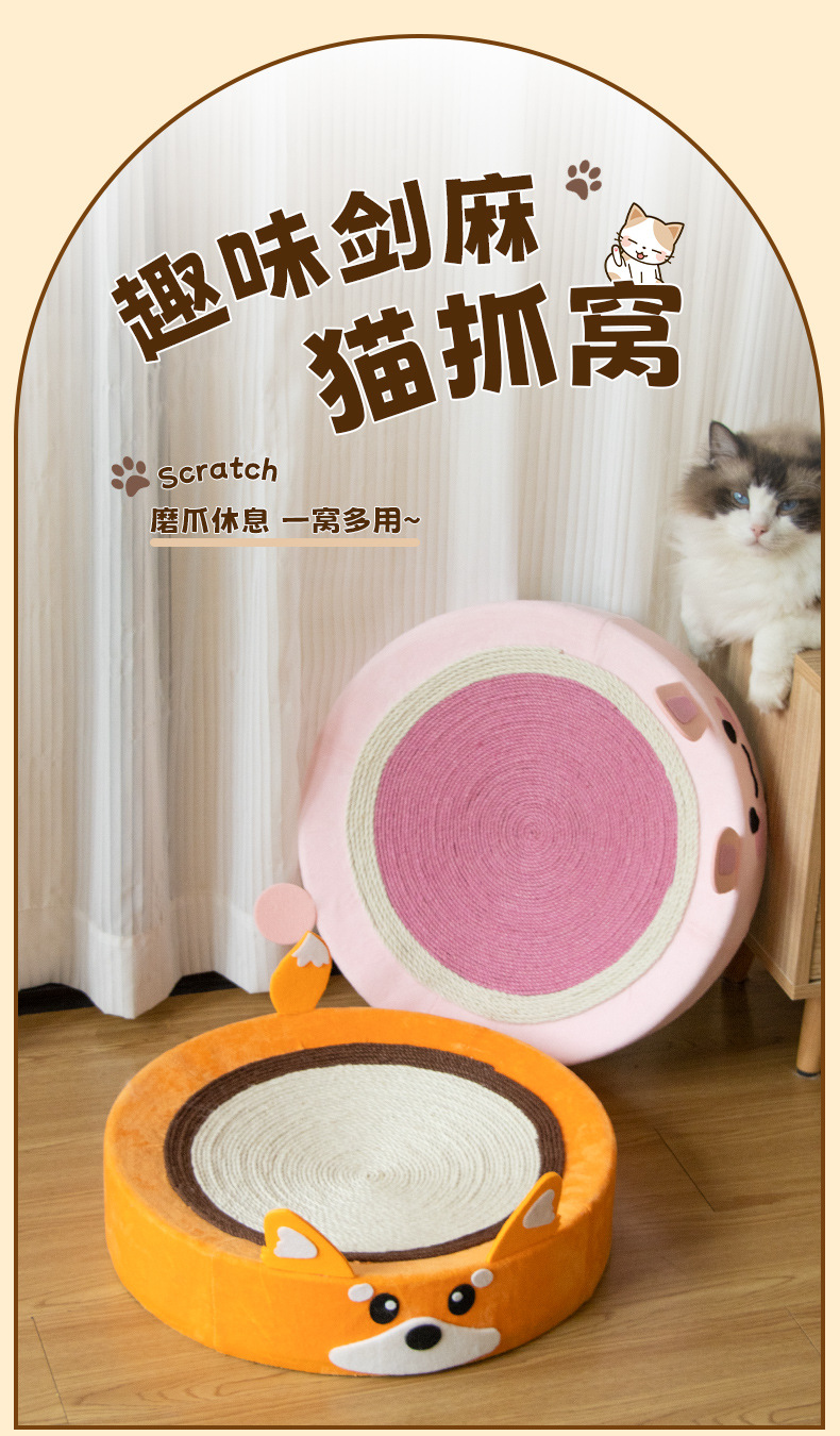 대형 사자수염 원형 고양이 집 겸용 스크래치 보드, 내구성 강하고 깨지지 않는 고양이 발톱 보호대, 애완용품