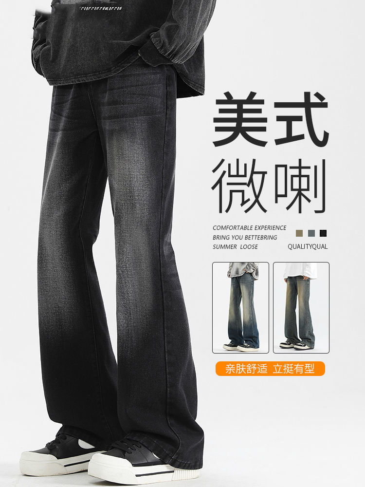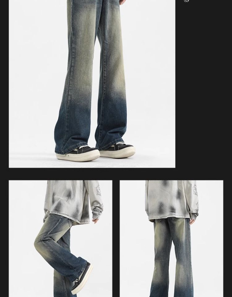 Weila Jeans 남성 봄과 가을 미국 스타일 새로운 그라디언트 느슨한 약한 바지 남성 트럼펫 캐주얼 긴 바지스토어 가기